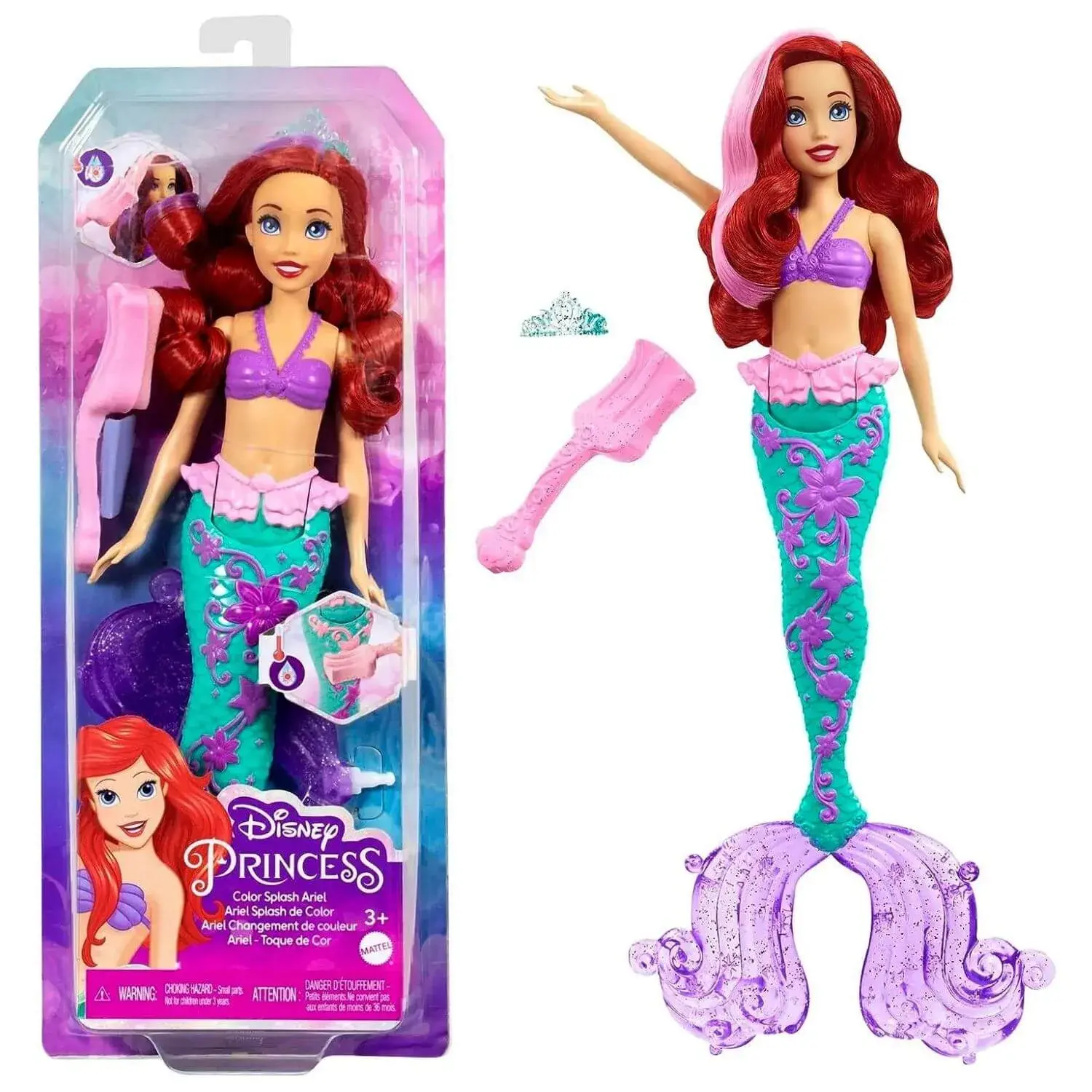 Çok sevilen Disney animasyon filmi Küçük Deniz Kızı'ndaki karakterden esinlenilerek tasarlanan Rengarenk Ariel bebeğin kuyruğunun ve saçının rengi değişir.