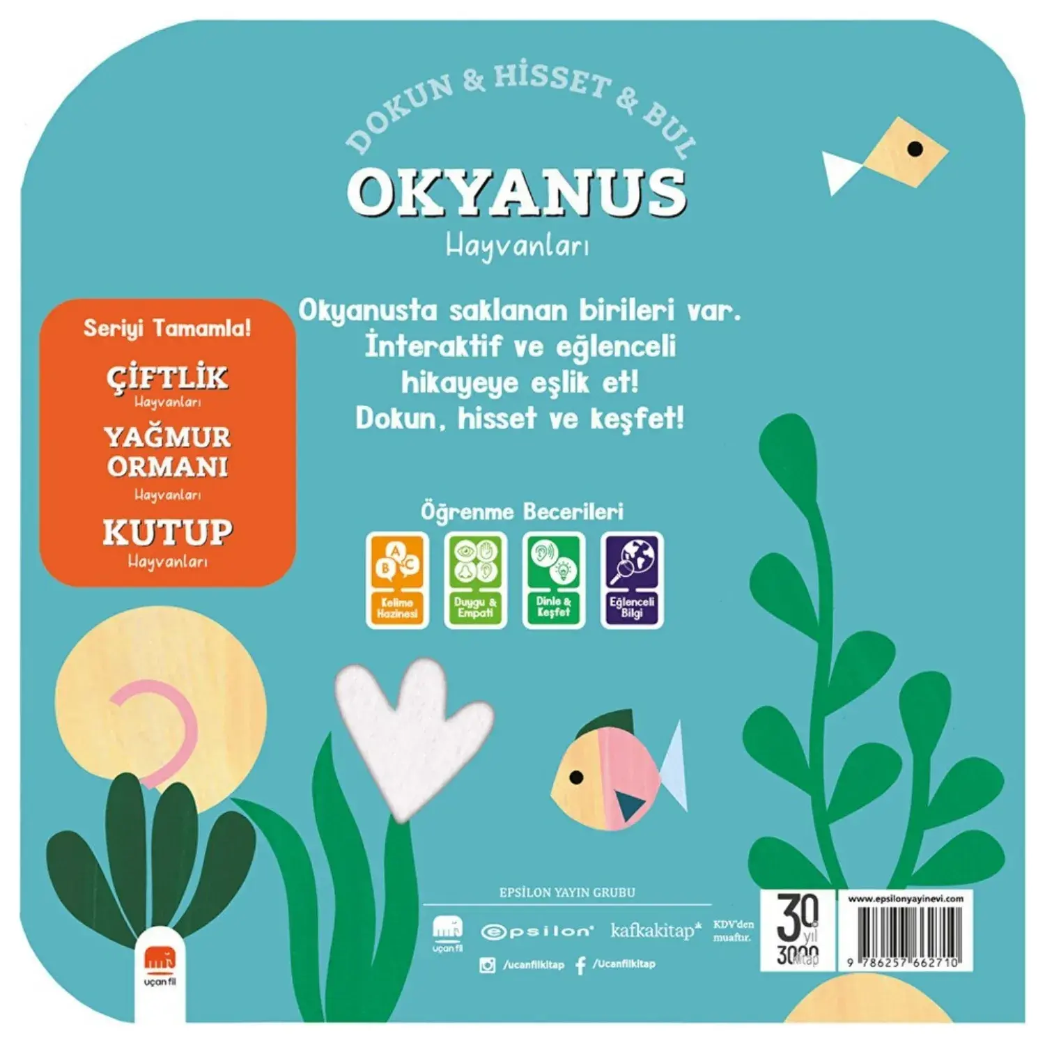- Her sayfasında yer alan yumuşak dokulu keçeler sayesinde minik eller, hayvanları tanırken ince motor becerilerini geliştirme fırsatı yakalıyor.