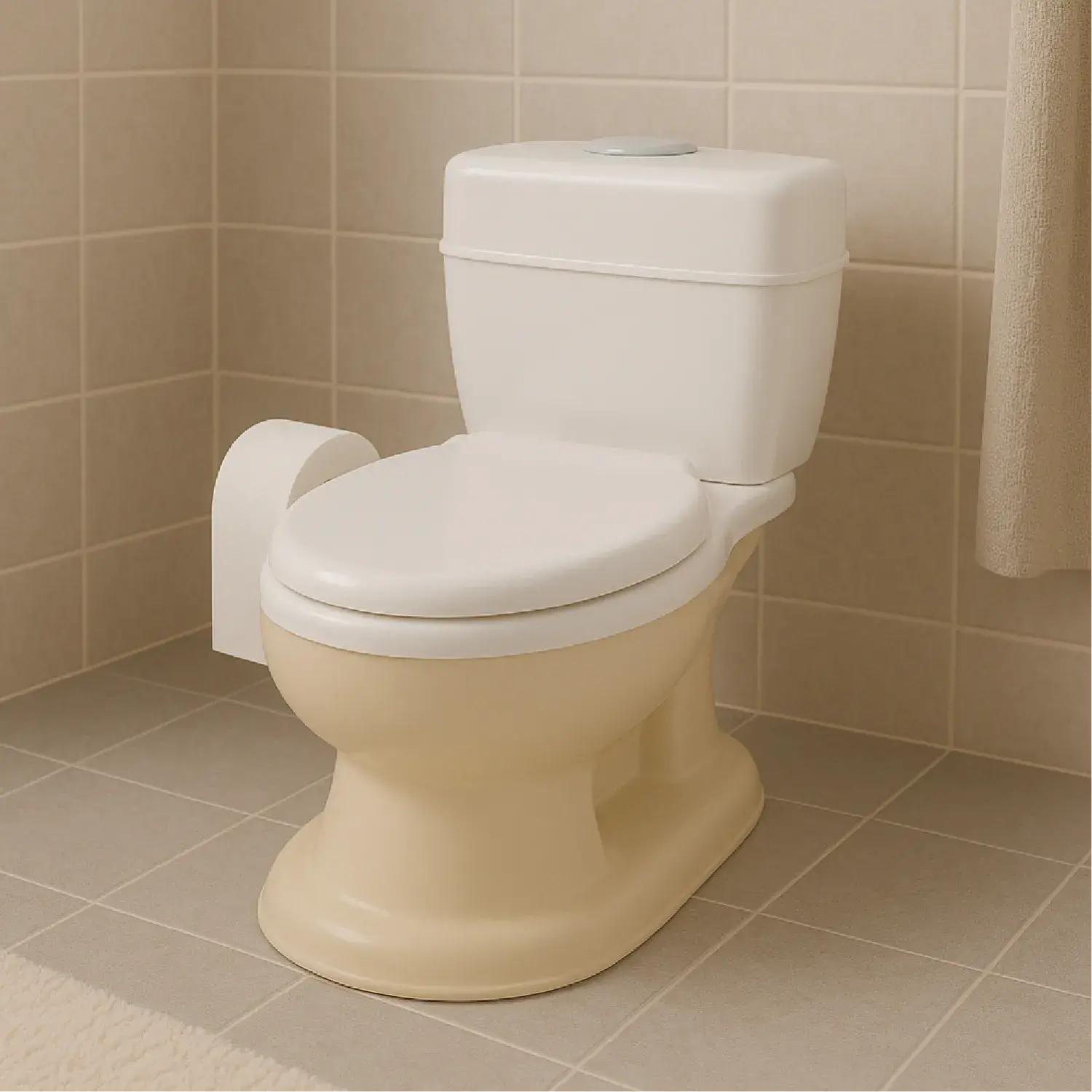 Dolu Nuve Eğitici Lazımlık Bebek Klozet Sifon Sesli Bej-Beyaz