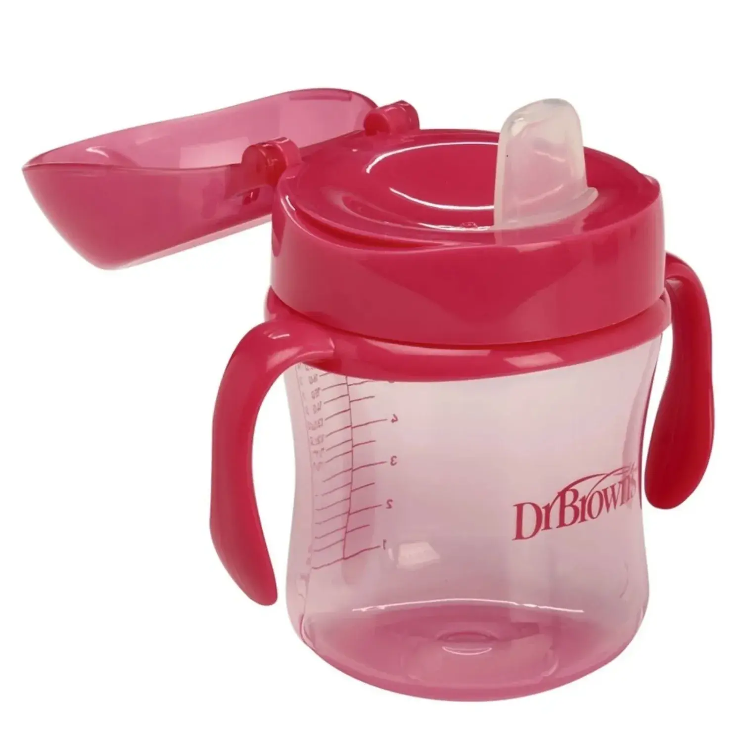 Dr. Brown's yumuşak uçlu alıştırma bardağı, bebeğin biberondan bardağa kolay geçiş yapmasına yardımcı olmanın en iyi yolu olacaktır. Bu geçiş kupası artık, küçük ellerin rahat bir tutuş elde etmesini her zamankinden daha kolay hale getiren sağlam, konturlu saplara sahiptir.