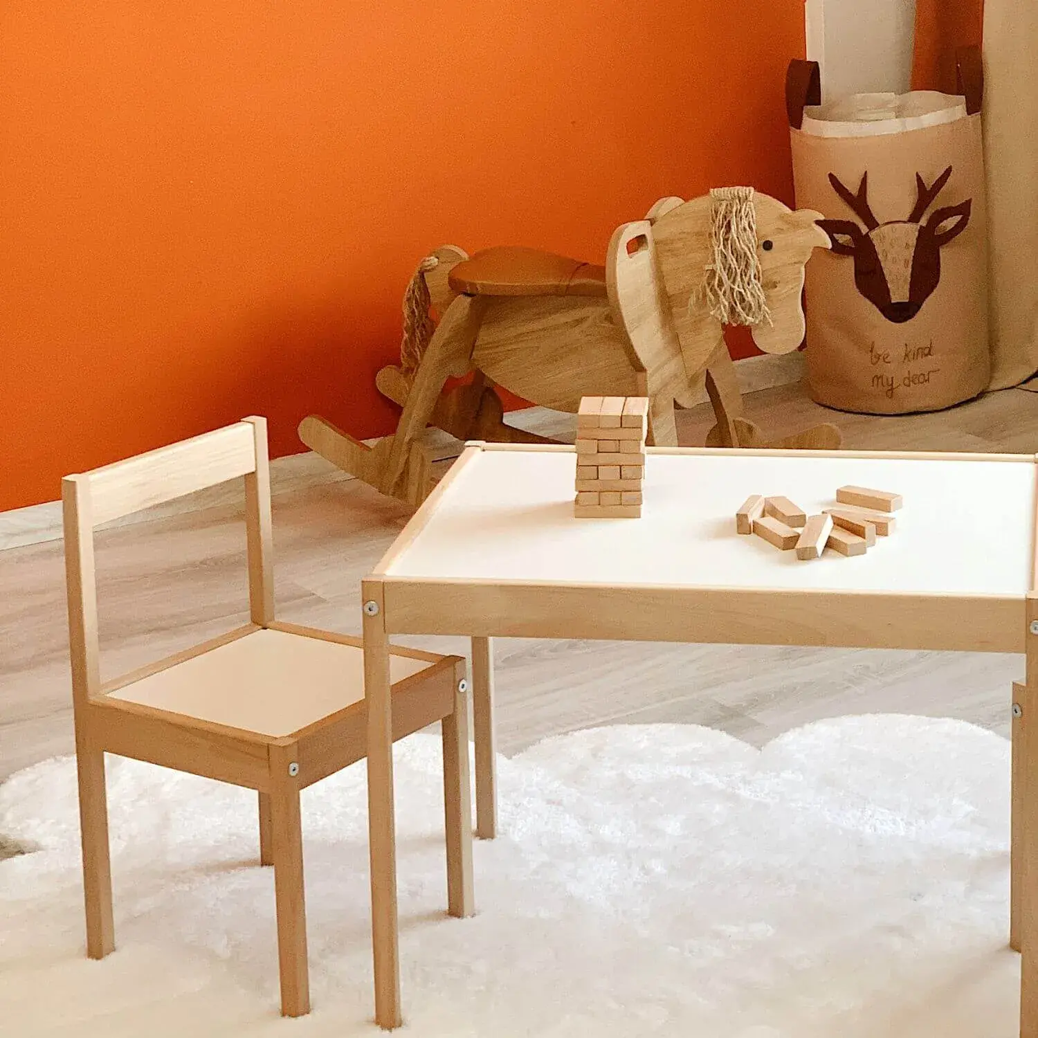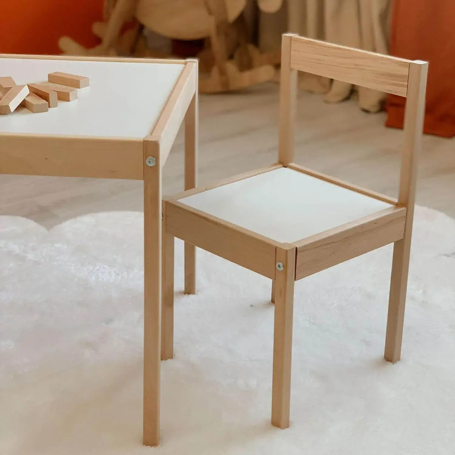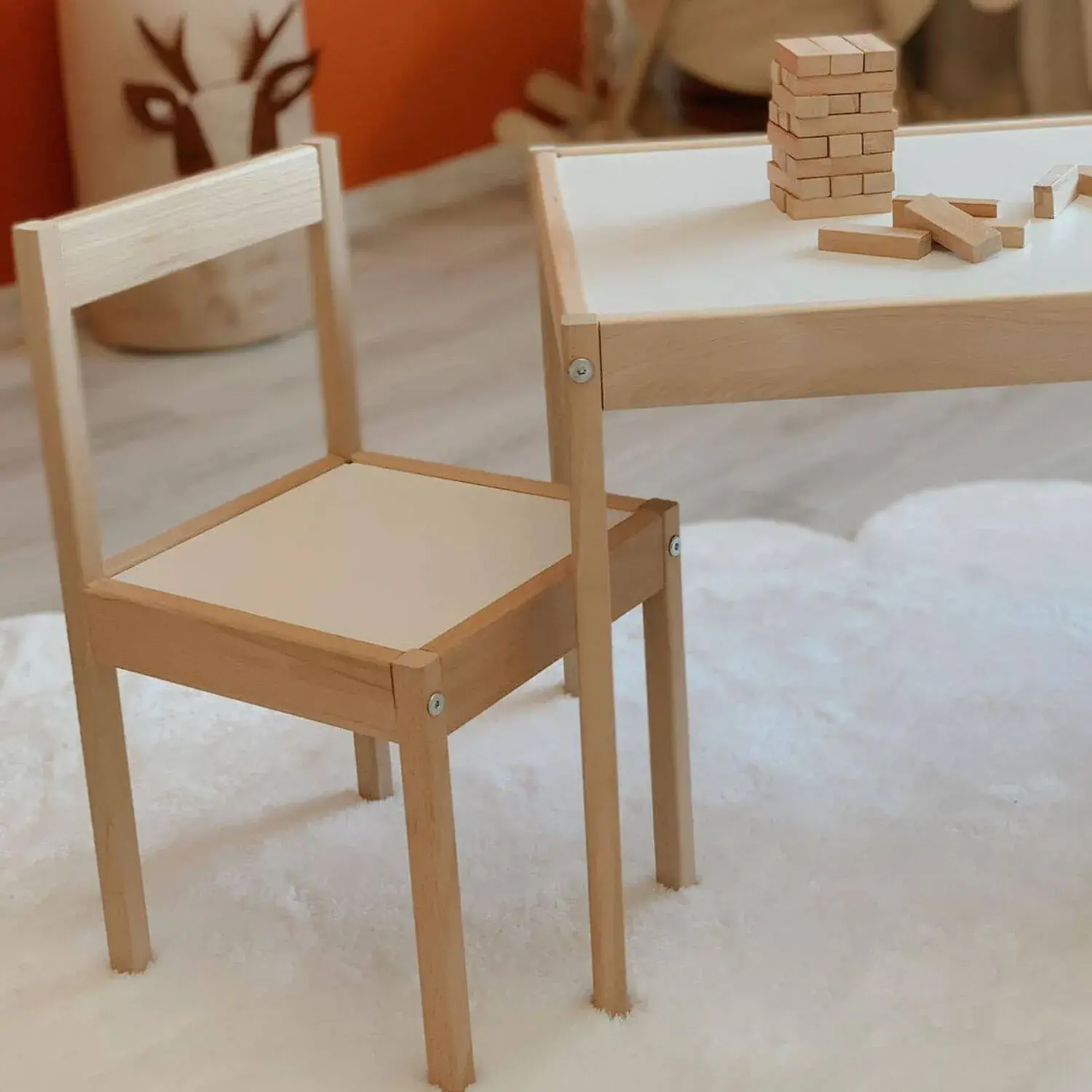 - Ahşap Çocuk Masa Sandalye Takımı; 1 Adet Masa ve 2 Adet Sandalyeden oluşmaktadır.