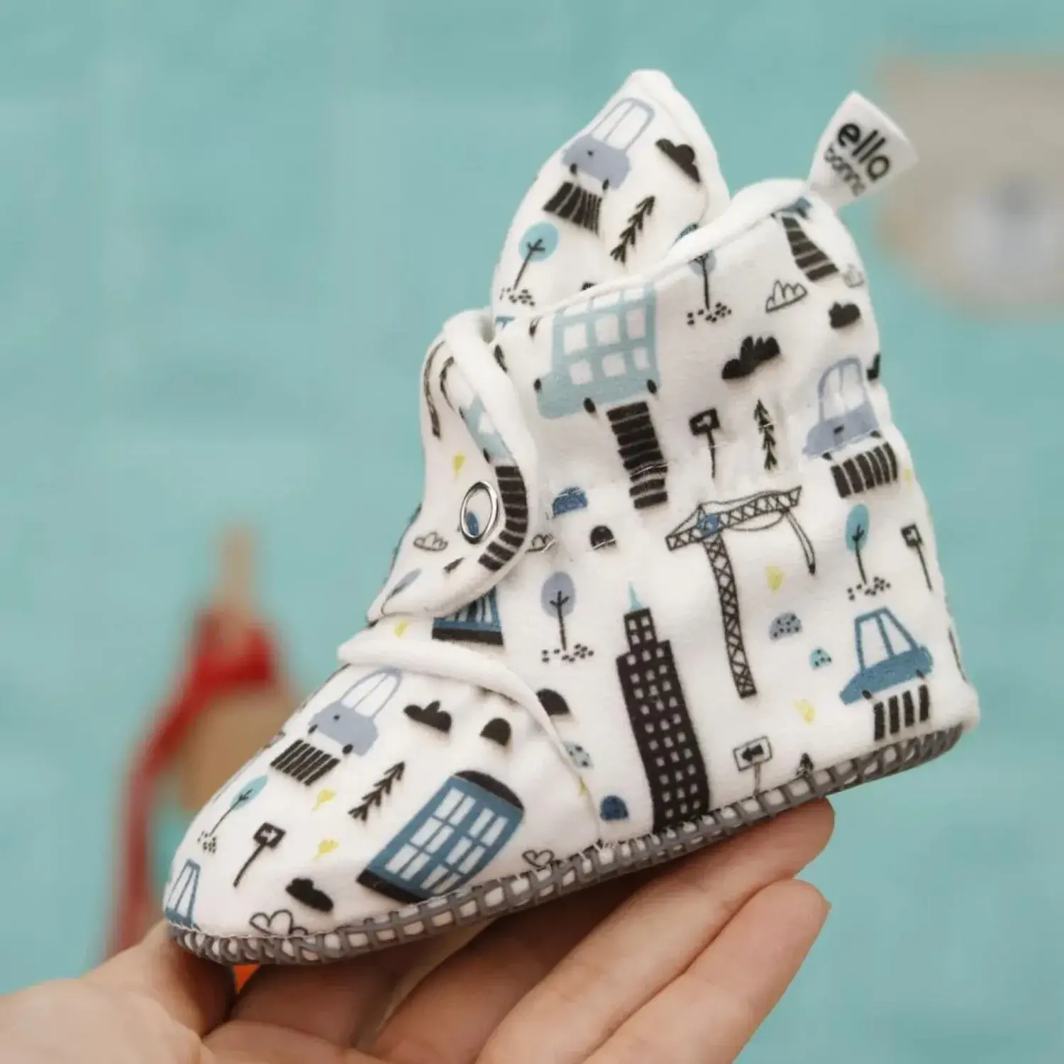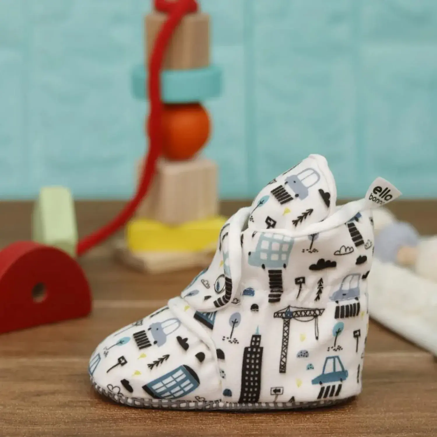 Ella Bonna Unisex Ev Botu Organik Pamuk Kaydırmaz Taban Şehir Hayatı