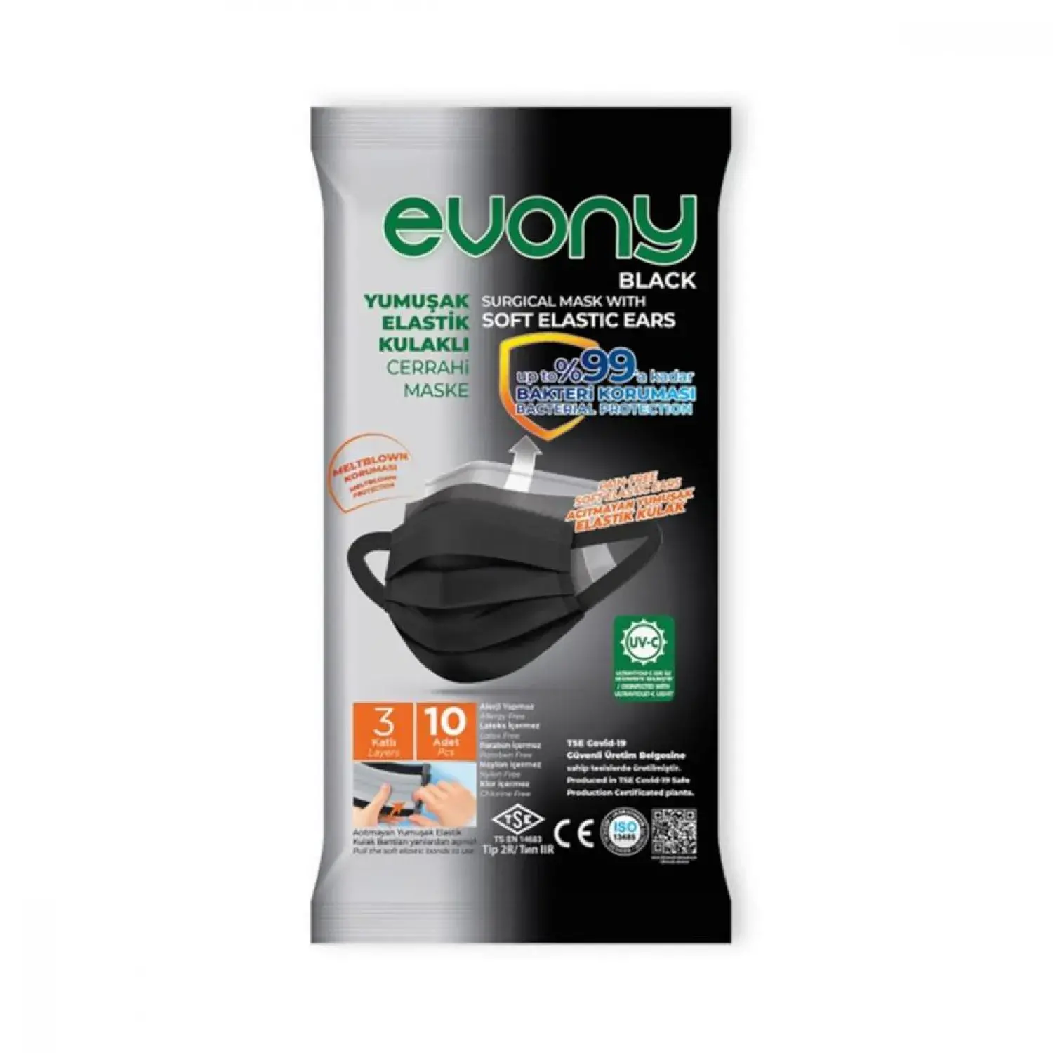 Evony Cerrahi Hijyenik Telli Maske 10lu Siyah