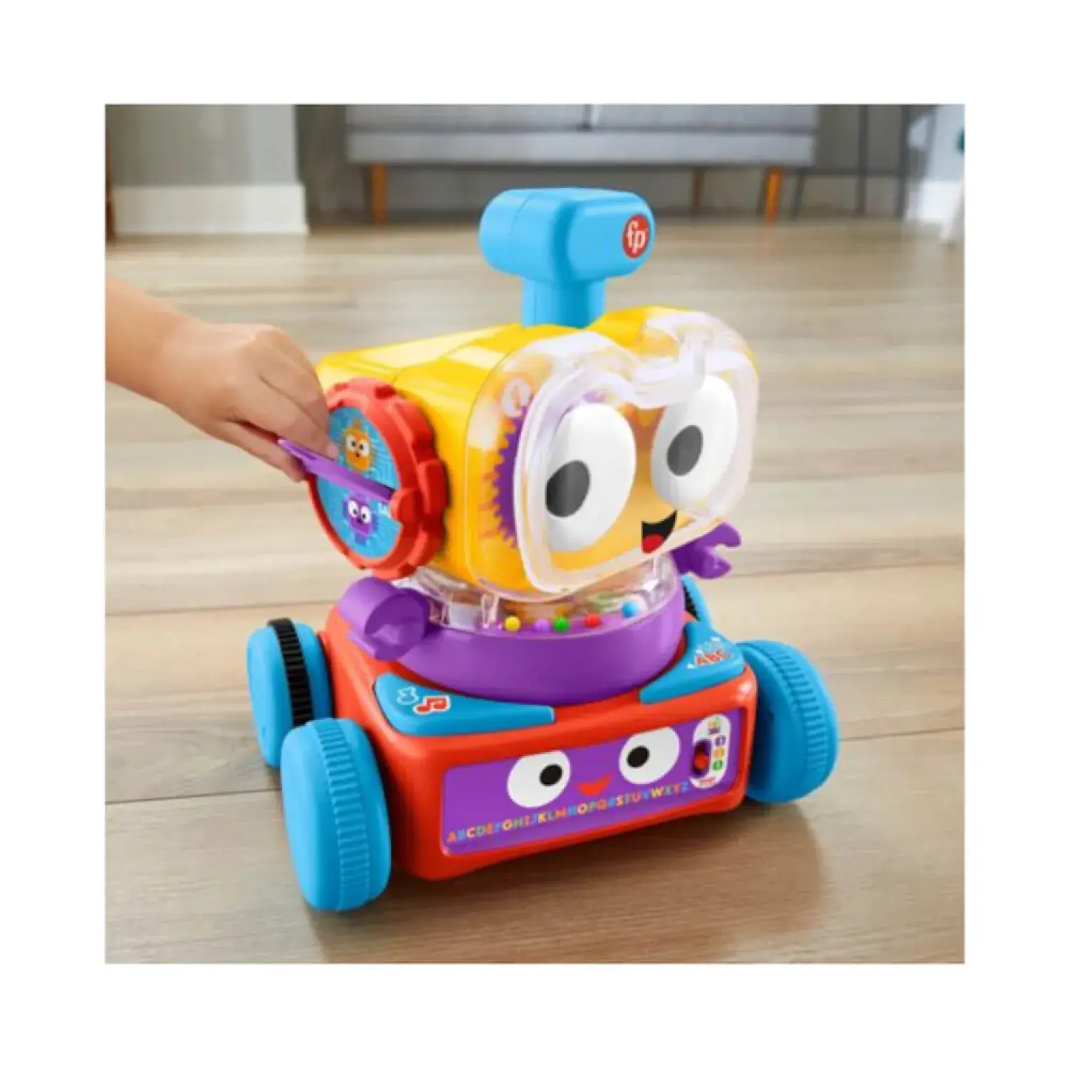 İçerisinde pek çok müzik, ışık ve uygulamalı aktivite bulunan Fisher-Price® 4'ü 1 Arada Eğitici Robot, bebeğinize 4 farklı oyun modu sağlayan ve dönüşebilen bir oyun arkadaşı! Robotun her bölümünde miniğinizin heyecanla keşfedeceği özellikler bulunur. Gözleri fırıldak şeklinde döner, hacıyatmaz özelliklidir ve bazen ise bebeğinizi emeklemeye teşvik eder. Bebeğiniz her bölümünü ayrı ayrı keşfedebilir veya hepsini bir araya getirip eğlenceli müzikler çalan, sesler çıkaran ve cümleler kuran etkileşimli büyük bir oyun arkadaşı edinebilir! Yaşa Göre Gelişim™ teknolojisinden faydalanarak çocuğunuzun yaşına ve gelişimine en uygun içerikleri seçebilirsiniz. Dili seçmek için dünya düğmesini kullanın: İngilizce ve Türkçe dilleri arasında seçim yapabilirsiniz.