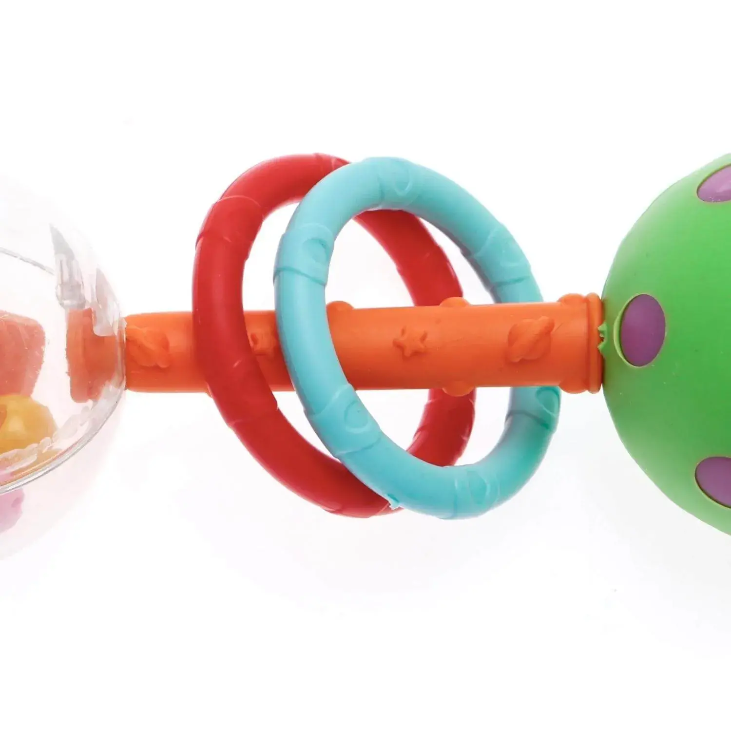 Galaxy Çıngırak, eğlenceli ve renkli detaylarıyla dikkatleri çeker. Parlak renkler ve sevimli desenler, bebeğinizin görsel algısını teşvik eder ve renkleri tanımasına yardımcı olur.