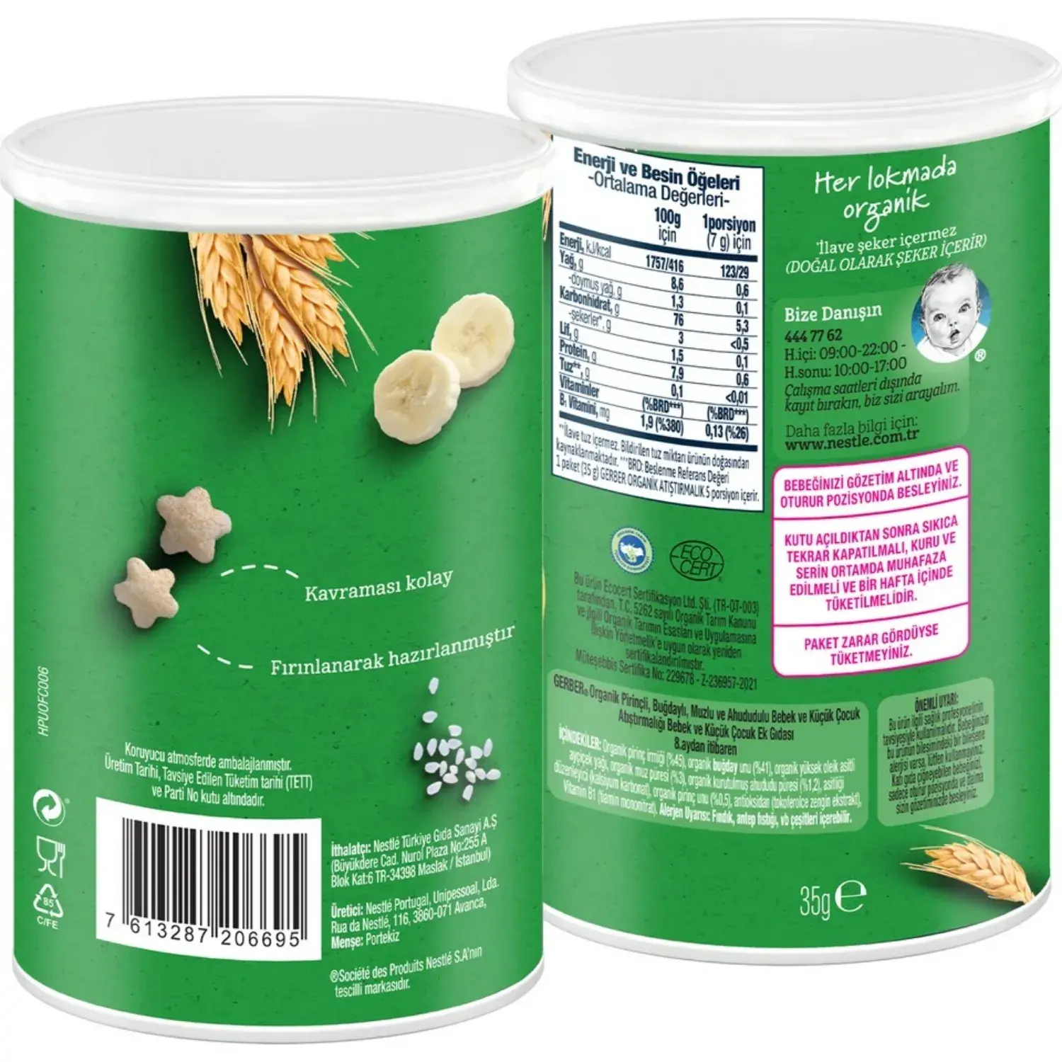 - 1 paket (35g) GERBER ORGANİK ATIŞTIRMALIK 5 porsiyon içerir.