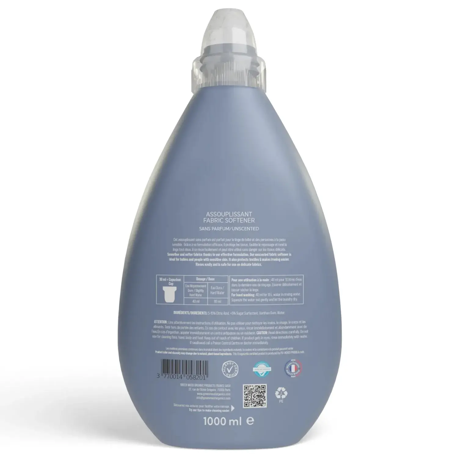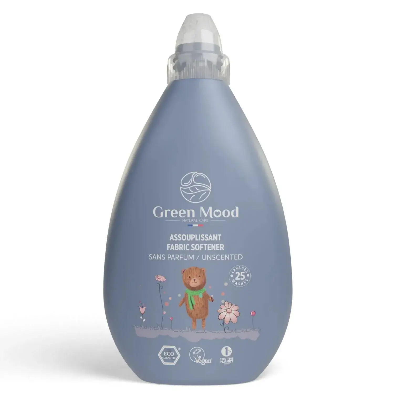 Green Mood bebek çamaşır yumuşatıcı bitkisel içeriğe sahip doğal ürünlerden imal edilmiştir ve Avrupa Birliği’nden ECOGARANTIE® sertifikası almıştır. Ham maddelerinin üretim sürecinden itibaren tüm üretim adımları ekolojik sertifikaya sahip olan ürünümüz doğaya saygılıdır. Biyoçözünür özelliği ile doğada kimyasal kalıntı bırakmayan Green Mood bebek çamaşır yumuşatıcısı, geri dönüştürülebilir şişesi sayesinde geri dönüşüm sürecine de katkı sağlar. Ürünümüz GDO, SLES, paraben gibi zararlı kimyasal içerikler barındırmaz ve bu sebeple petrokimyasal madde içermez.