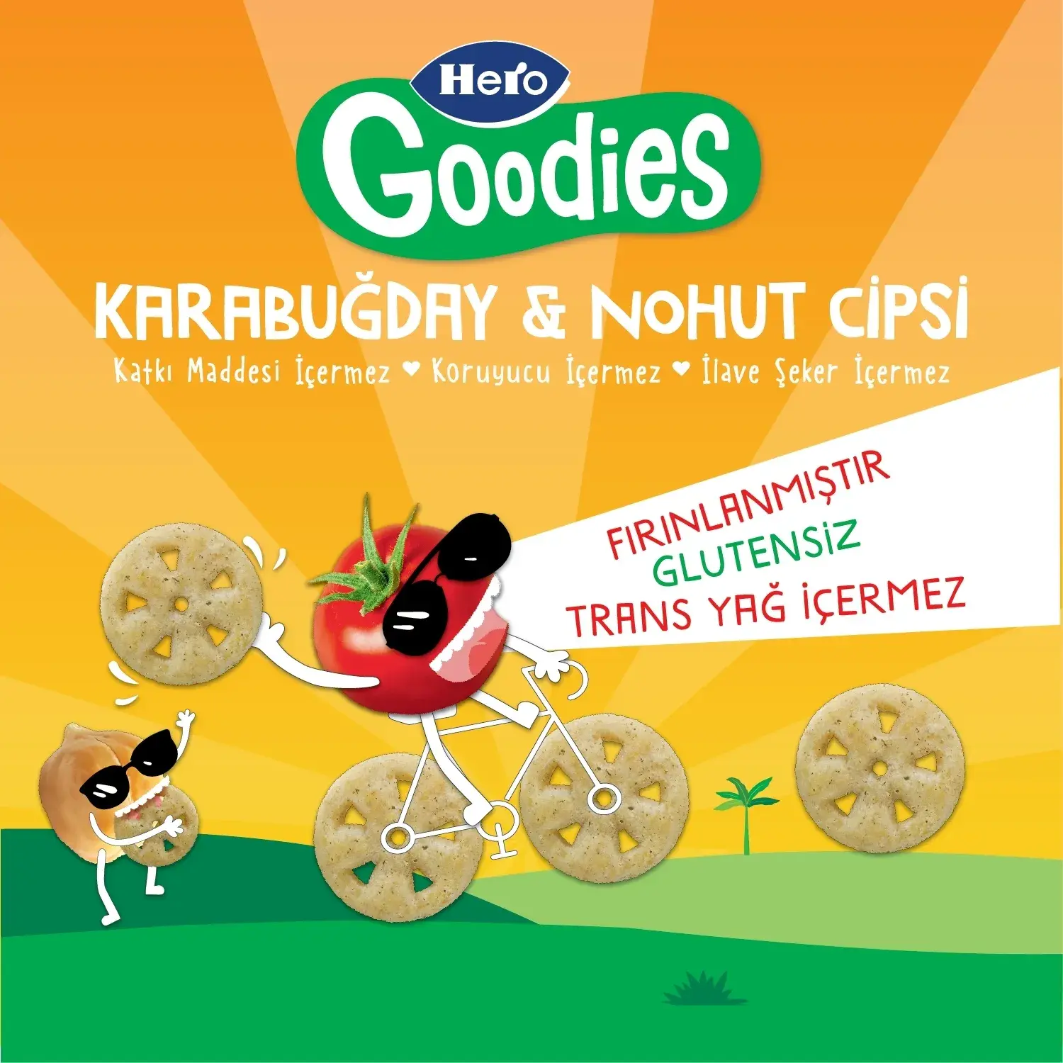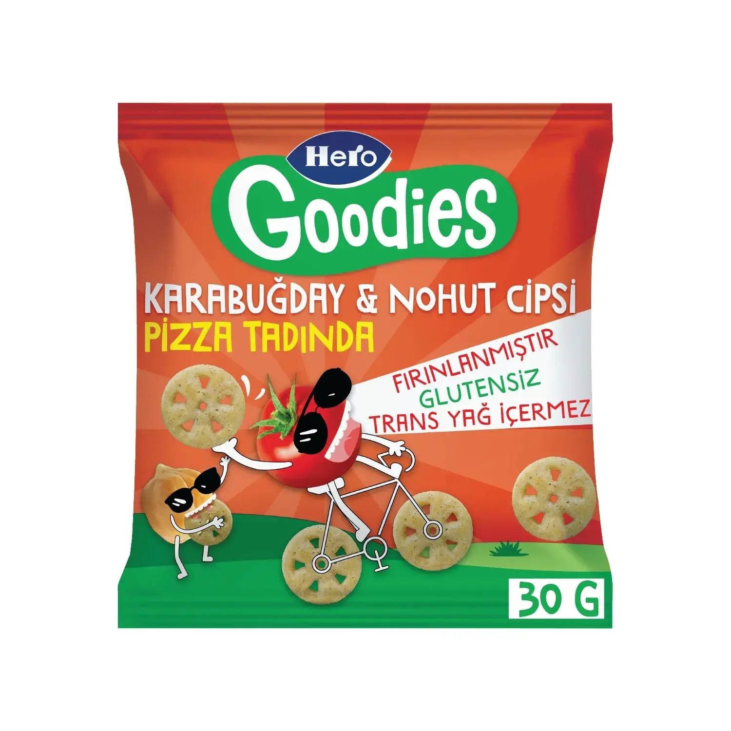- Glutensiz ve lif kaynağı olmasıyla birlikte tekerlek şekliyle de çocukların eğlenerek yiyeceği ve tadına bayılacağı Hero Goodies Pizza Tadında Karabuğdaylı Nohut Cipsi, sağlıklı atıştırmalık için eğlenceli bir alternatif!