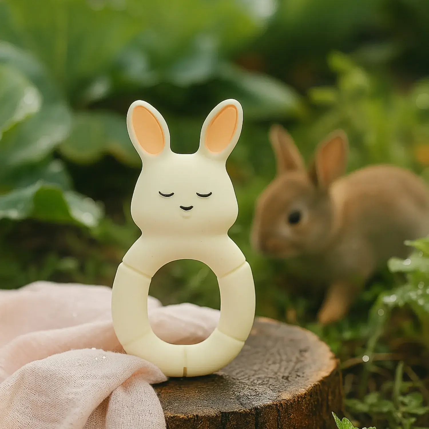 Hubble Doğal Bebek Diş Kaşıyıcı Ve Oyuncağı Tavşan Halkalı