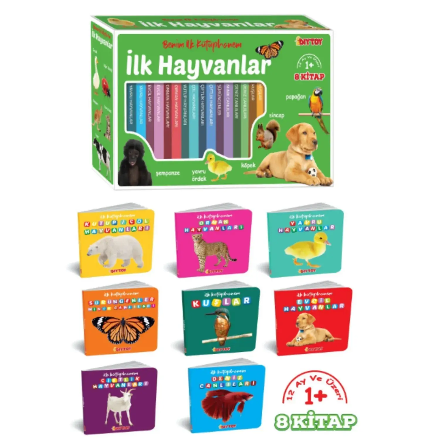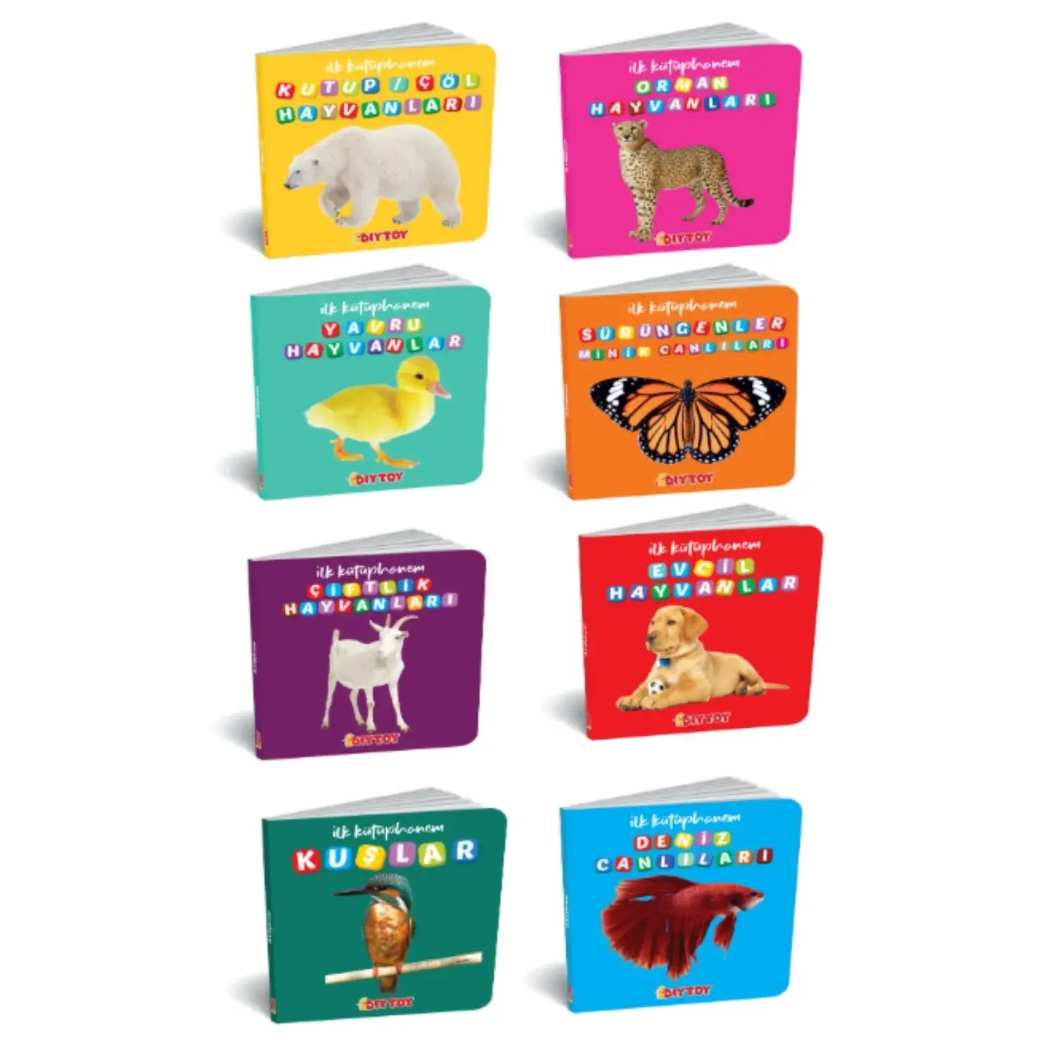 Eğlenceli ilk kitaplarım hayvanlar seti canlıların parlak ve ilgi çekici görüntülerini içeren 8 adet kitaptan oluşuyor.