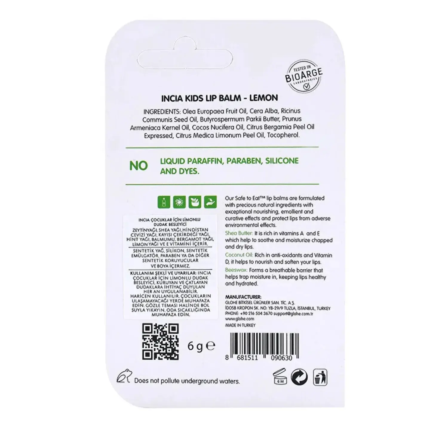 - INCIA Kids Limon Besleyici %100 Doğal Dudak Bakım Kremi, çocukların cilt florasına uyumlu olarak BioArge Laboratuvarlarında test edilmiştir, böylece bebeklerde ve çocuklarda güvenle kullanılabilir. Bebeklerde dudak kuruluğu gibi durumlarda bile güvenli ve etkili bir çözüm sunar.