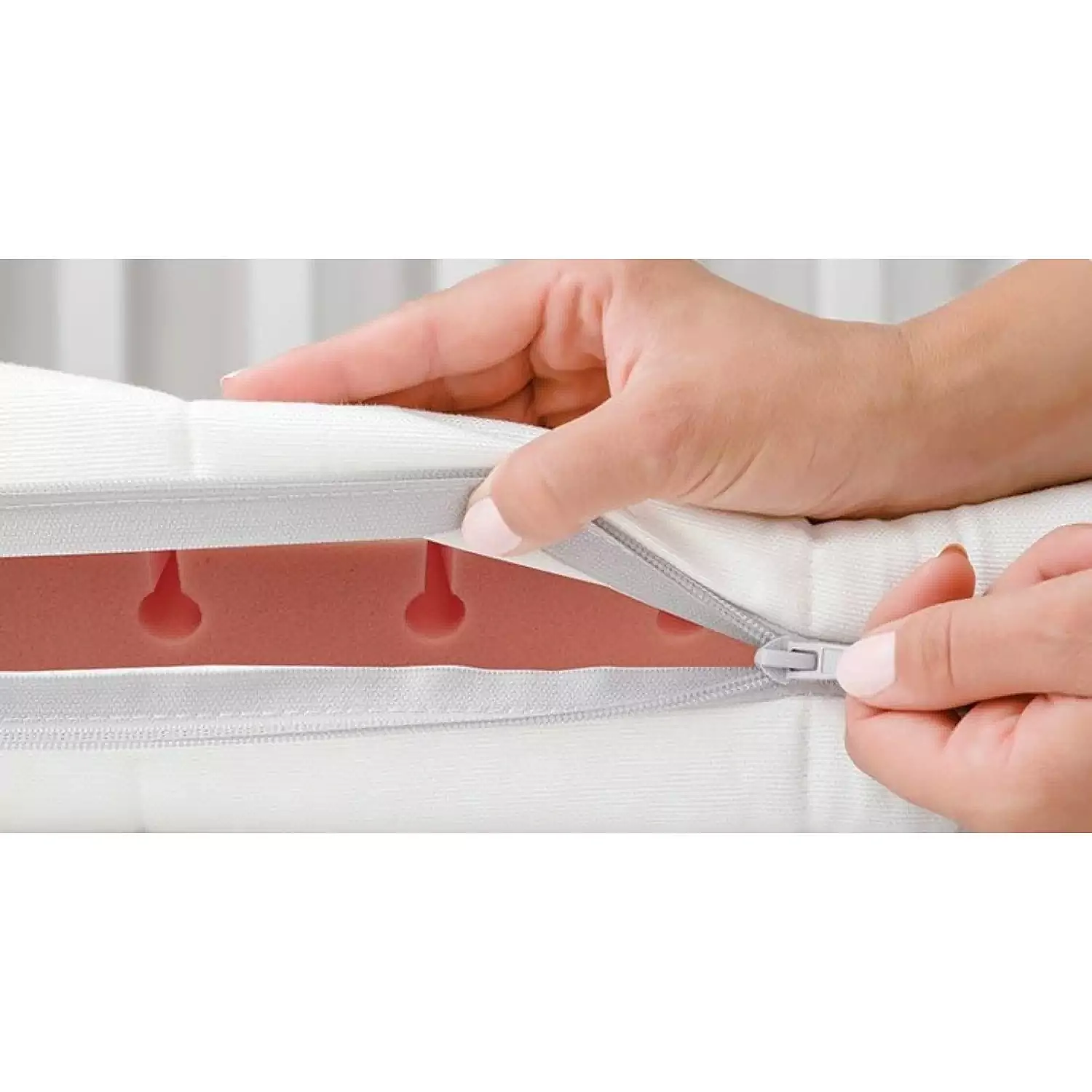 Pamuklu, yumuşak, nefes alabilen ve nem düzenleyici fermuarlı yatak kılıfı %100 hava geçirgendir ve üstün nem koruması sağlar. Fermuarlı kılıf 30° C'de yıkanabilir ve hızlı kurur.