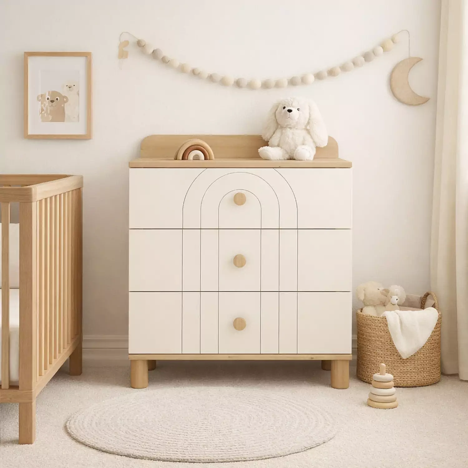 Göz yormayan renk paleti, doğal ahşap detayları ve yumuşak geçişli çizgileri sayesinde bebeğinizin odasında huzurlu ve sıcak bir ortam yaratır.