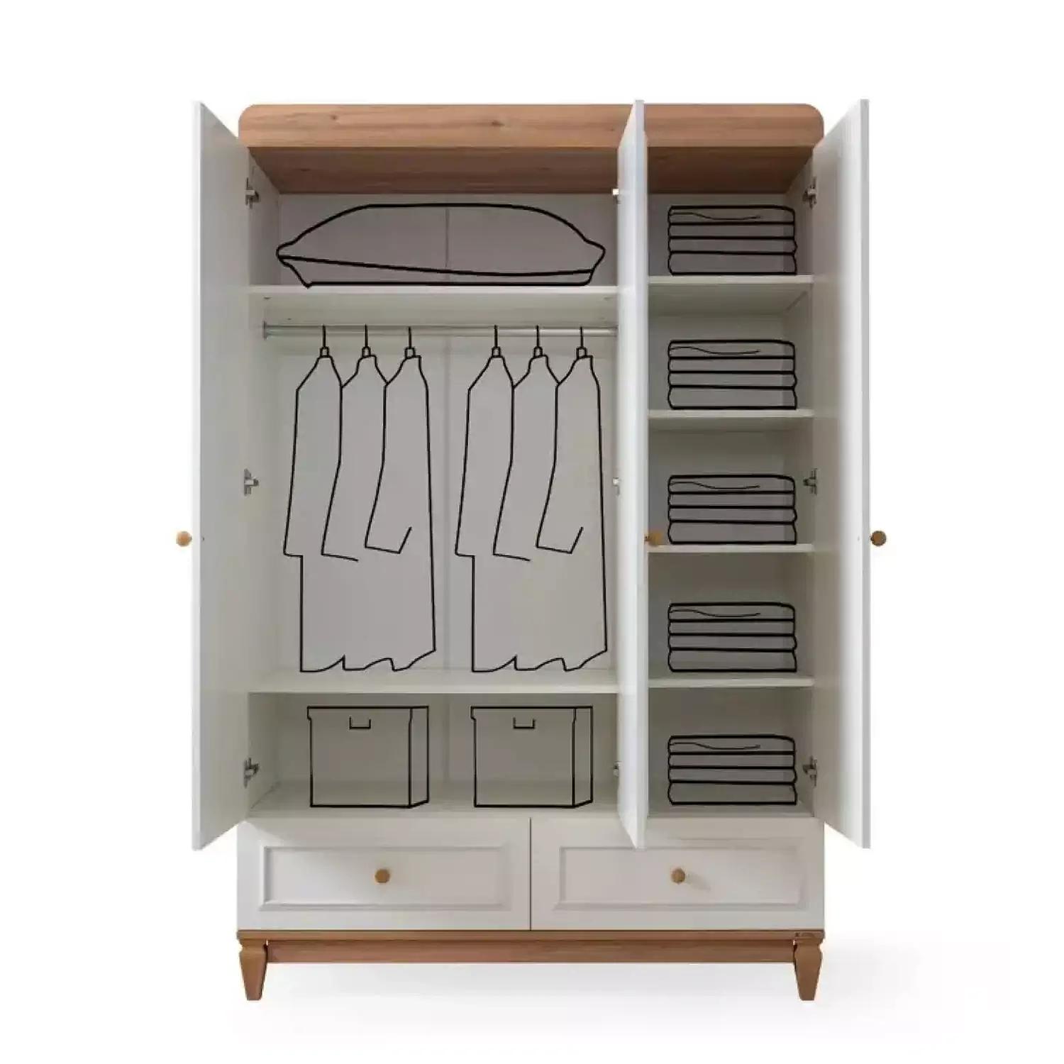- Modern ve sade tasarımıyla öne çıkan Kanz Lyon 3 Kapılı Dolap, bebek ve çocuk odalarının vazgeçilmez parçalarından biridir. Geniş iç hacmi sayesinde çocuğunuzun kıyafetlerini, ayakkabılarını, oyuncaklarını ve diğer eşyalarını düzenli bir şekilde saklamanıza yardımcı olur.