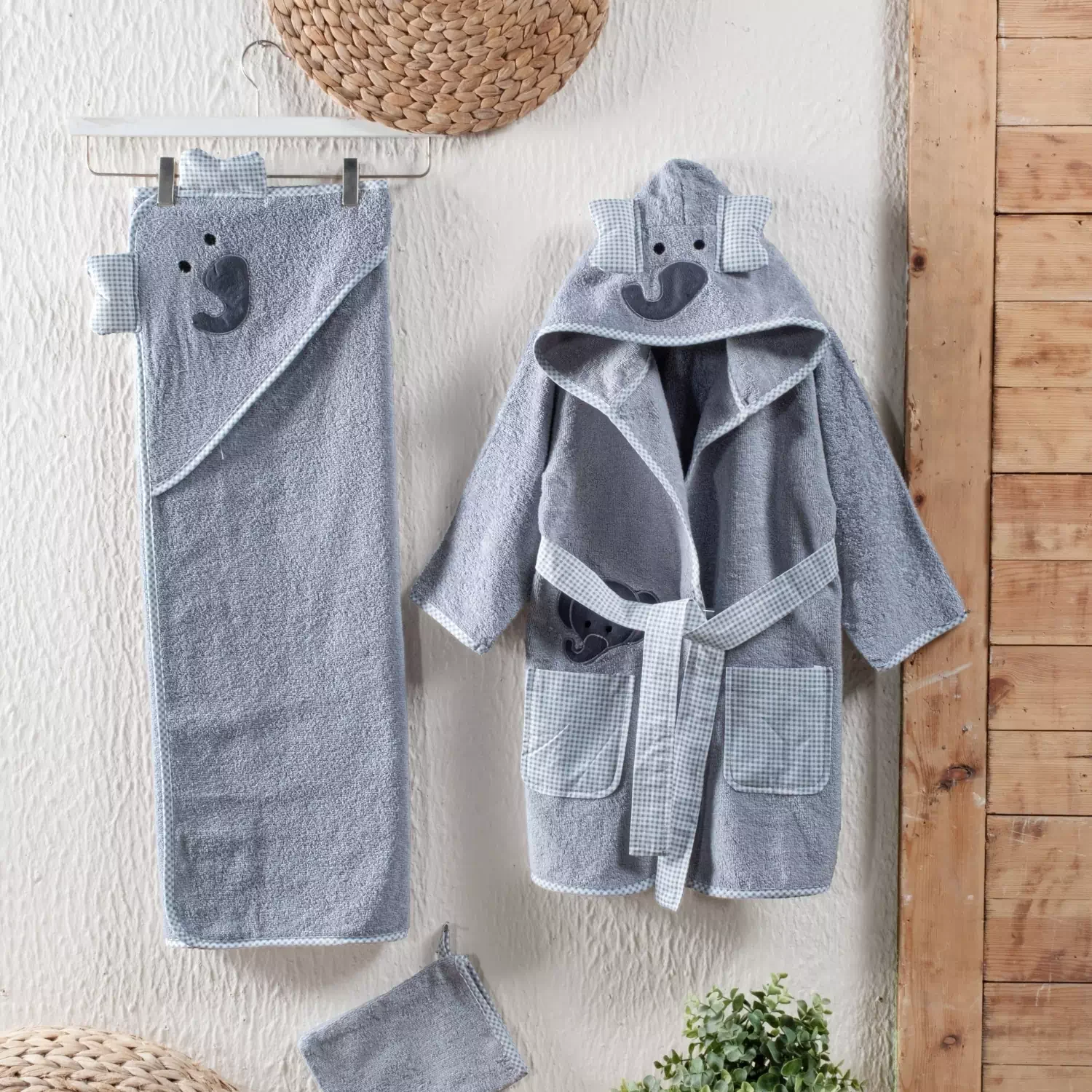 Kidboo Bornoz Seti 3lü Fil Gri