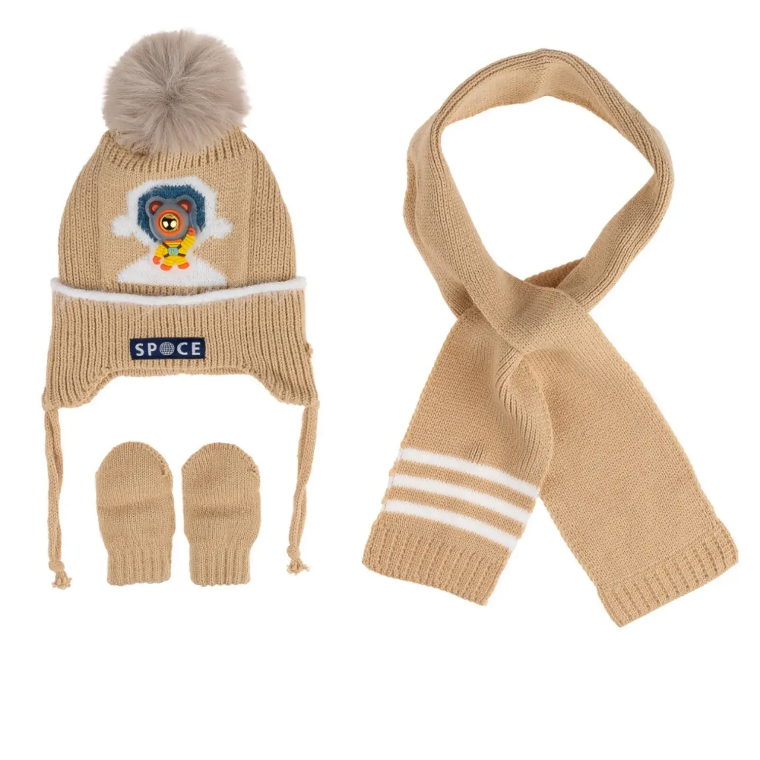 Kitti Erkek Bebek Eldiven Atkı Bere Takım 0-18 Ay Bej