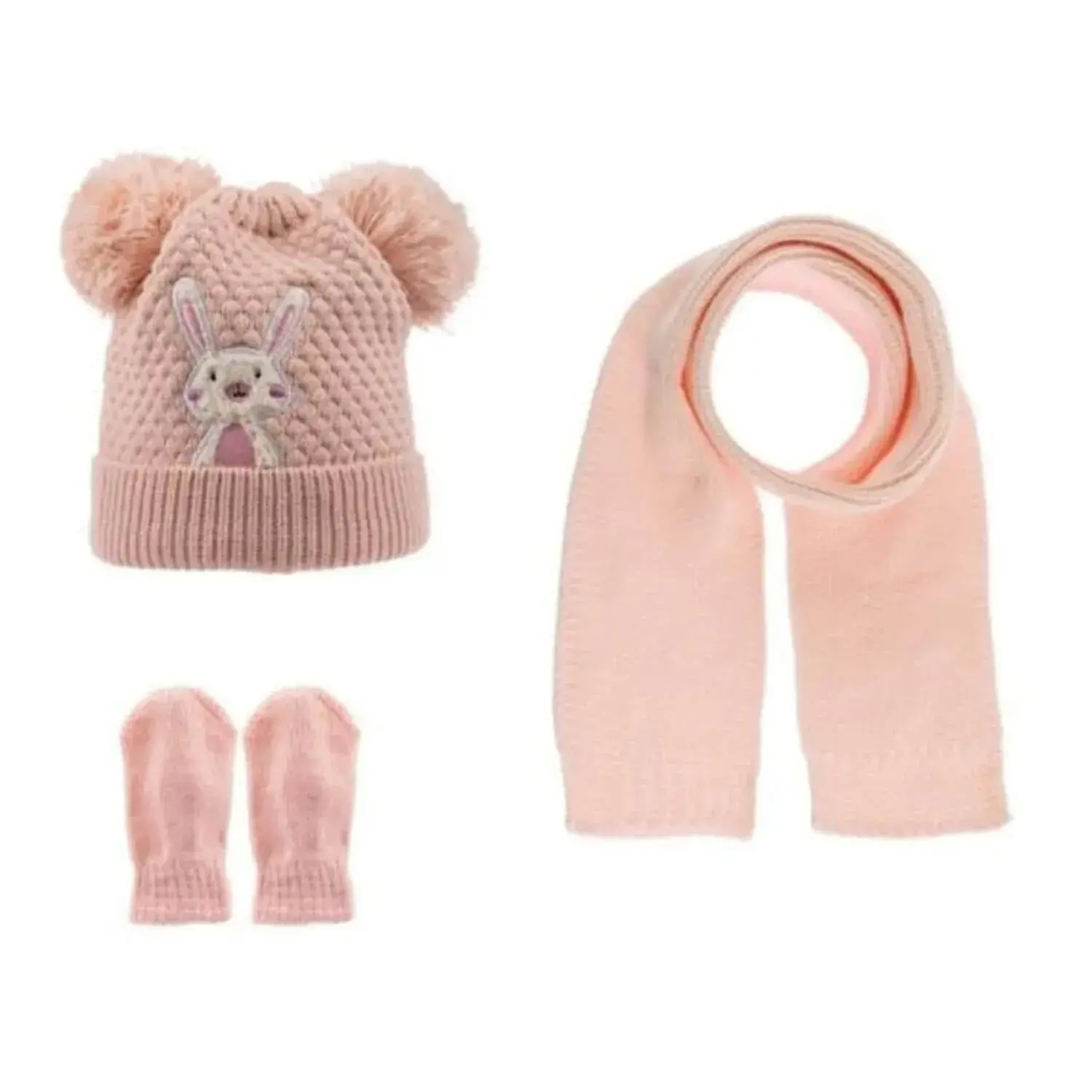Kitti Kız Atkı Bere Eldiven Takım Pudra