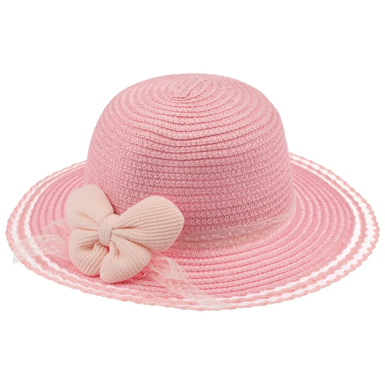 Kitti Kız Bebek Hasır Şapka 1-3Yaş Açık Pembe