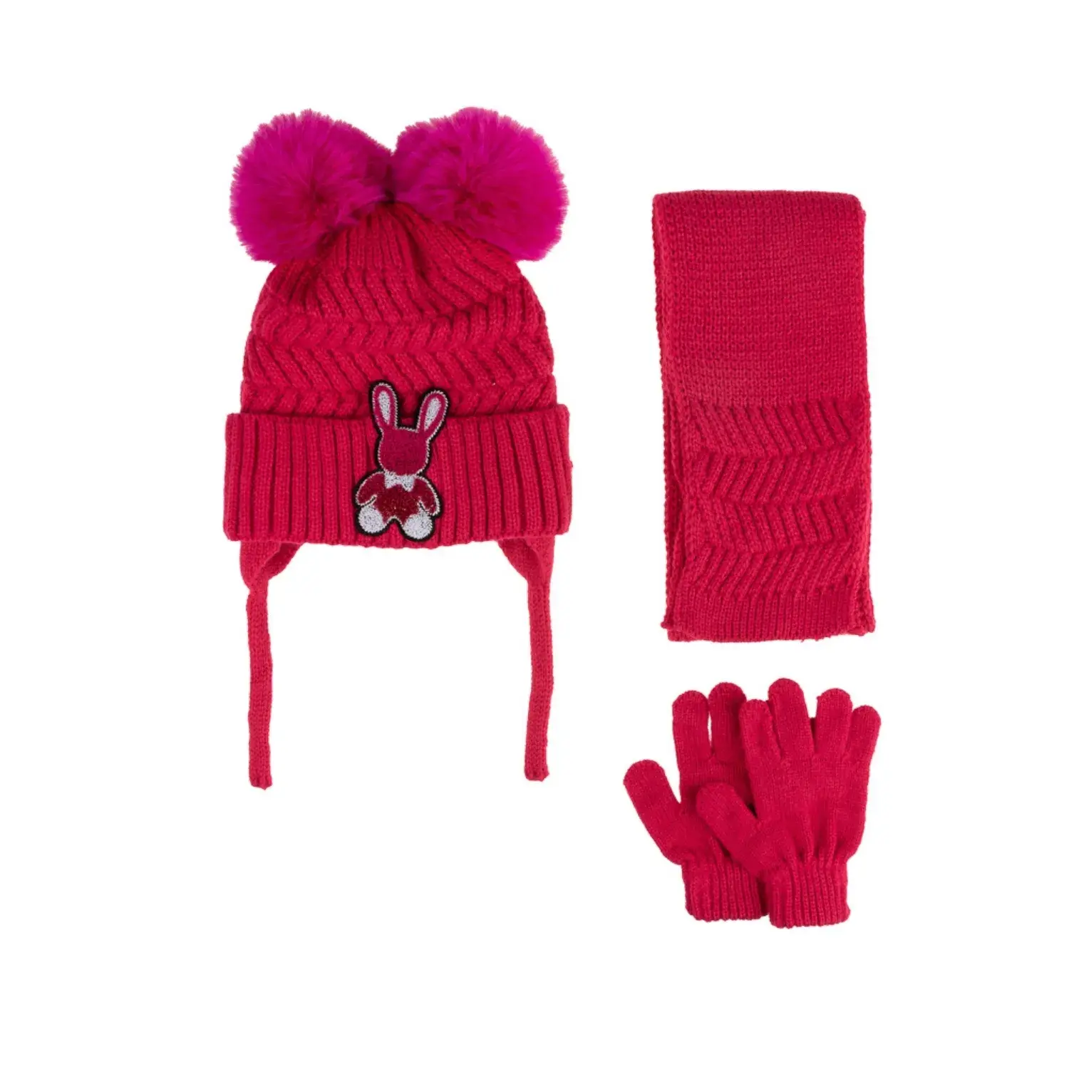 Kitti Kız Eldiven Atkı Bere Takım 1-4Yaş Fuşya Asortili Fuşya