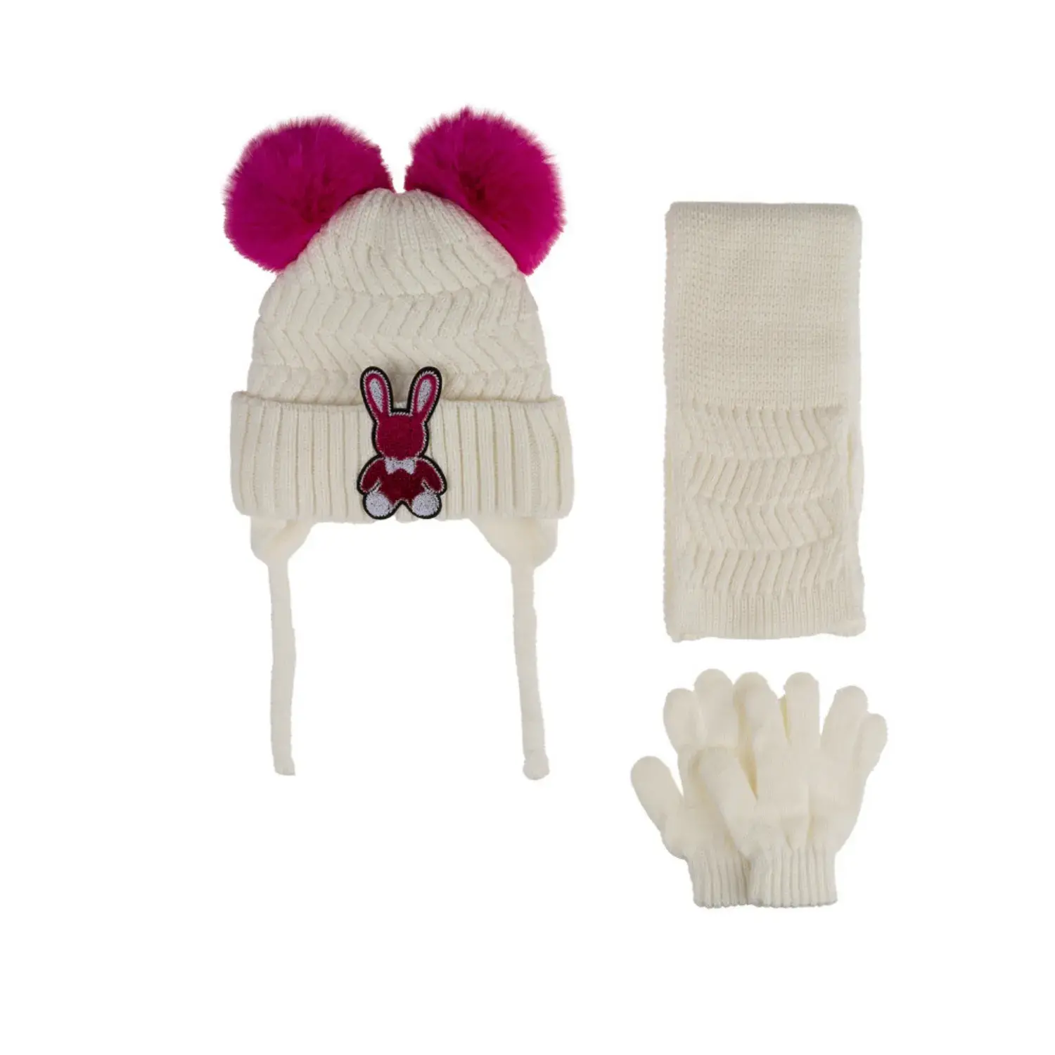 Kitti Kız Çocuk Eldiven Atkı Bere Takım 1-4Yaş Krem