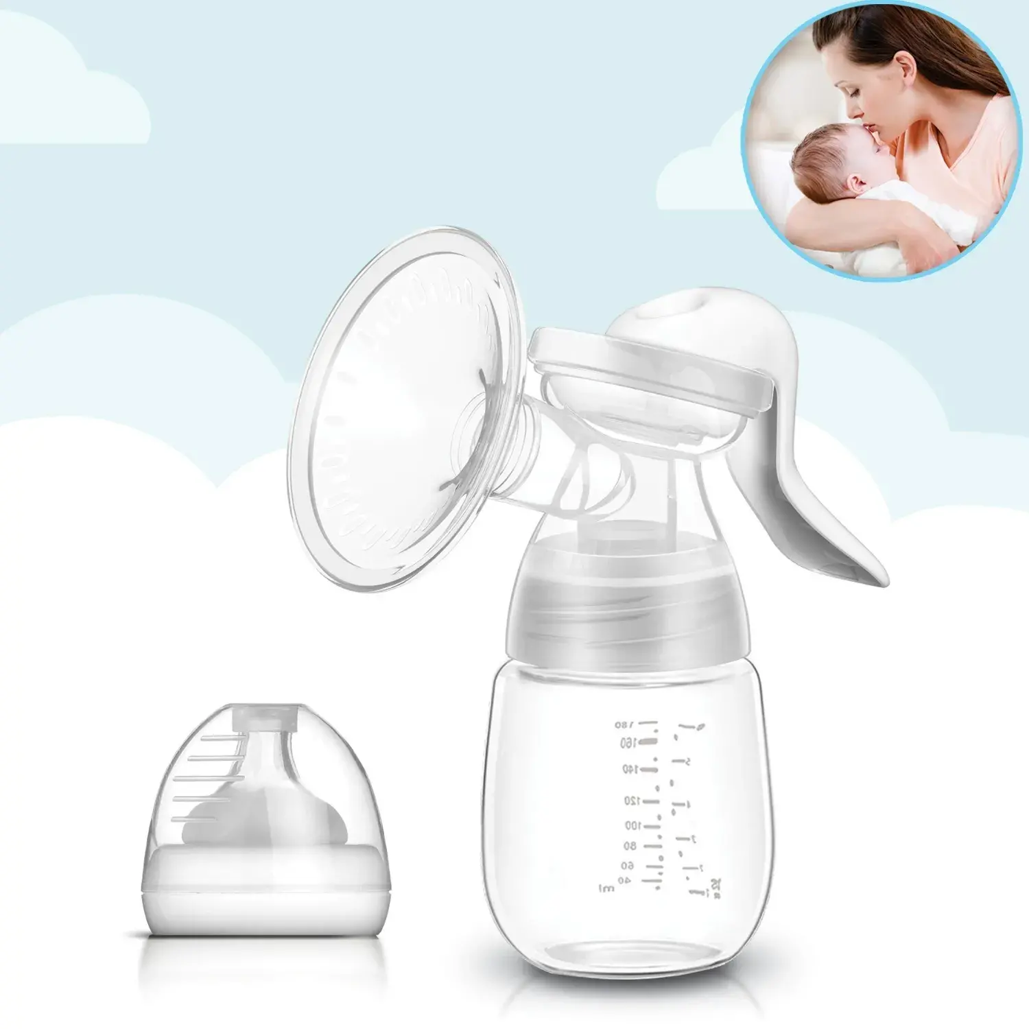 - Kiwi Manuel göğüs pompası, silikon yumuşak masaj başlığı ile rahat süt sağar.
