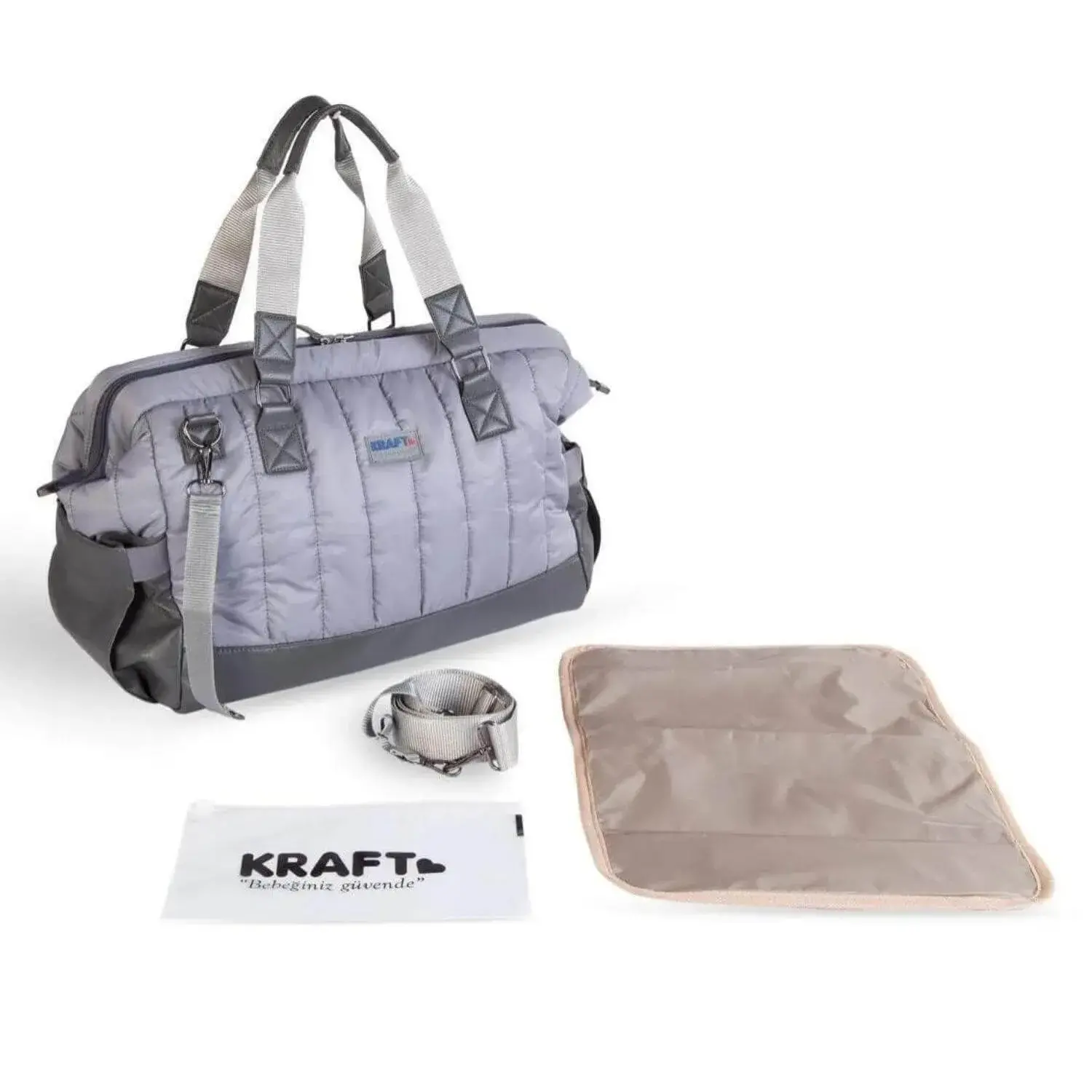 Bebek bakım çantası Hem omuzda hem de elde taşınabilir.