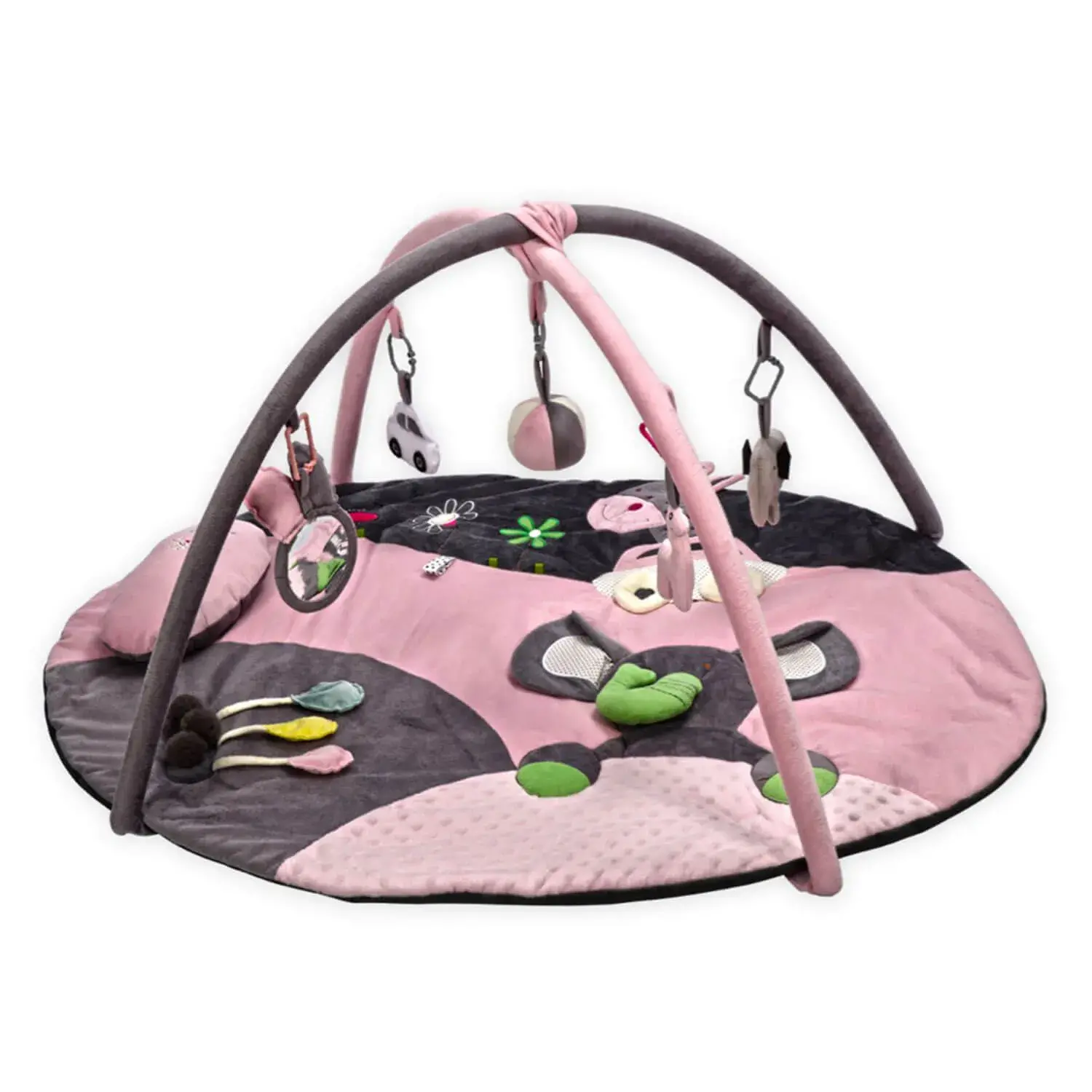 Zoo Oyun Halısı bebeğinizin motor hareket gelişimini destekler. Motor gelişimi desteklemek için üzerinde sesli, 3 boyutlu balonlar ve 3 adet pelüş top, kumaş işleme çiçekler, çiçek dokumalı destek yastığı, farklı dokular yumuşak zemin, hışırtılı 3 boyutlu fil, hışırtılı oyuncak araba, çıngıraklı oyuncak fil, çift taraflı ayna, 3 boyutlu zürafa & araba, çıngıraklı oyuncak zürafa ve hışırtılı oyuncak top bulunmaktadır.