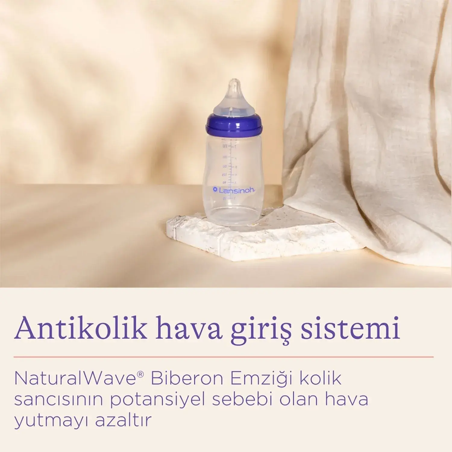 Biberon emziği, süt akışını kontrol etmek için özel bir uca sahiptir ve antikolik hava giriş sistemi hava yutmayı azaltır.