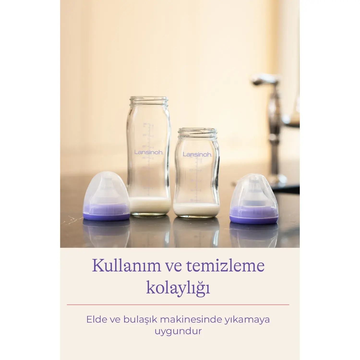 Lansinoh® Cam Biberon & NaturalWave® Biberon Emziği, bebeklerin annelerinden ayrı kalmak durumunda olduklarında sağılmış anne sütüyle beslenmesi ve anneleriyle buluştuklarında emmeye devam edebilmeleri için özel olarak tasarlanmıştır.
