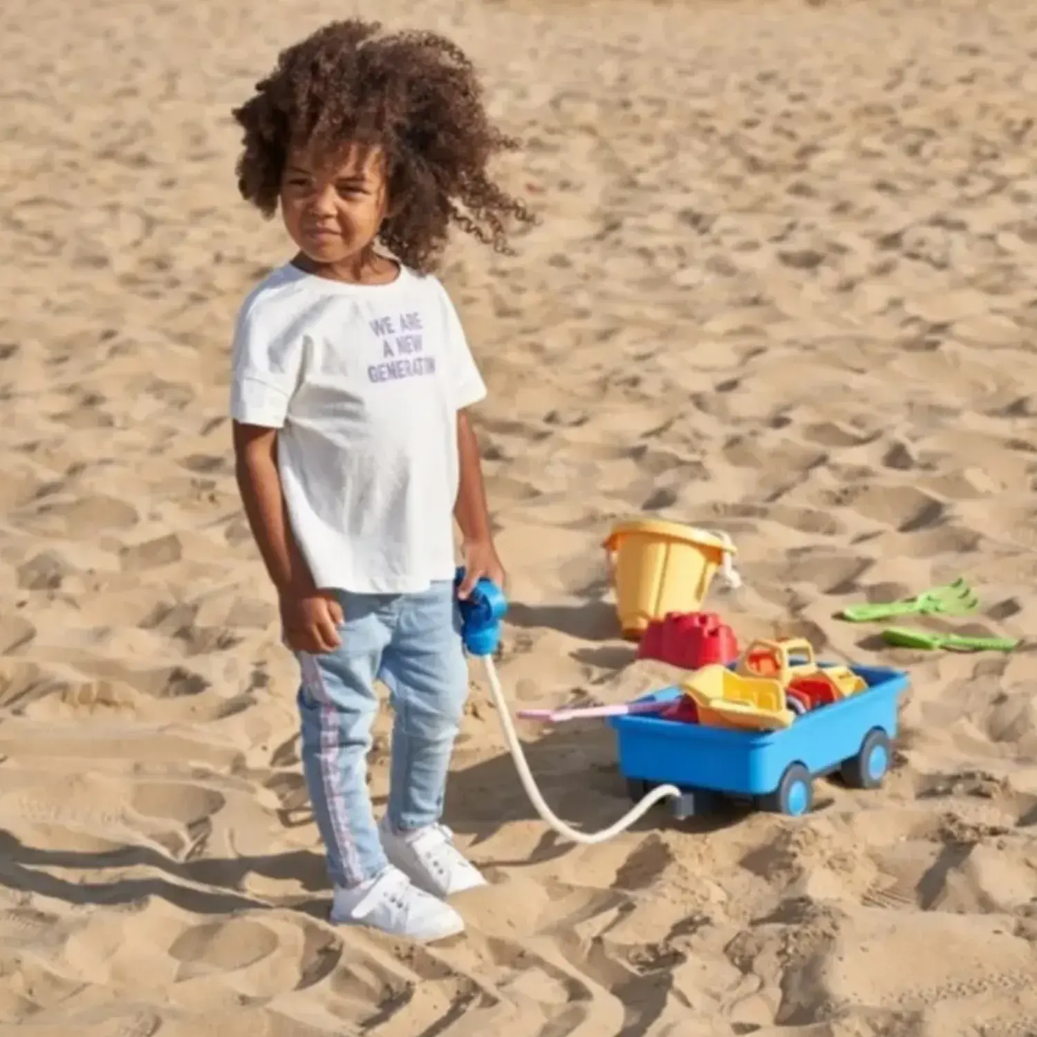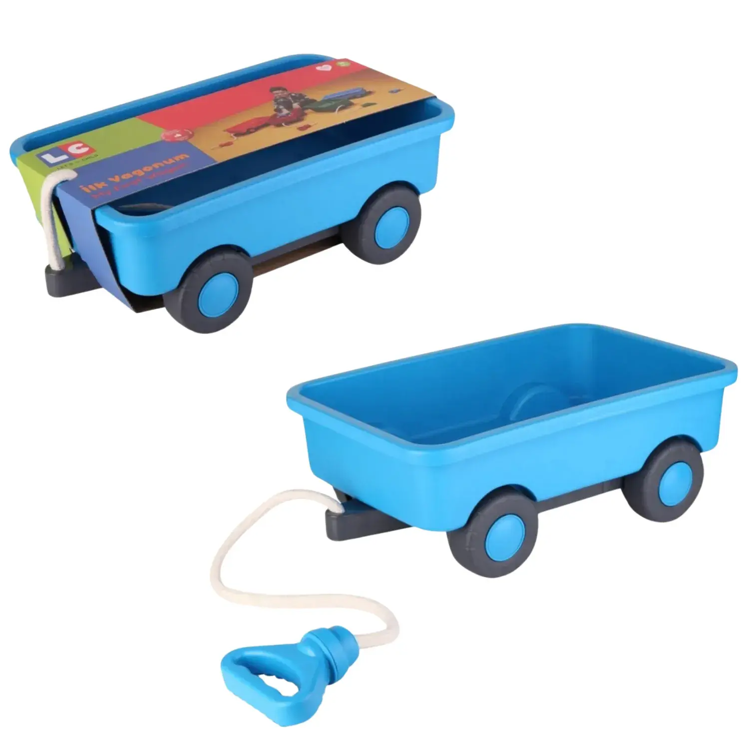 Hazırsan yapman gerekeni biliyorsun; çek çek özelliğe sahip vagonunu sevdiğin eşyalarla, kumlarla, oyuncaklarla veya her ne istiyorsan onlarla doldur ve kolay kavranabilir özellikli tutma kısmından çekmeye başla!