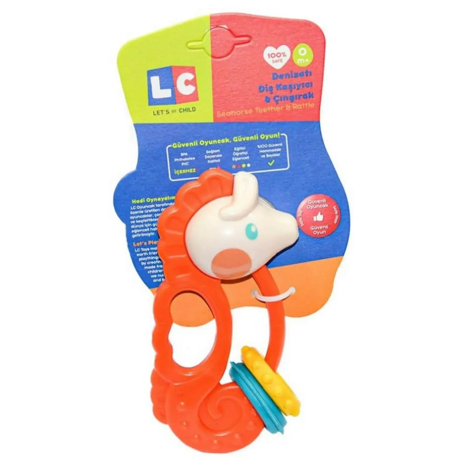Let’s Be Child Renkli Balık Çıngırak, bebeklerin eğlenerek güvenle oynayabilecekleri mükemmel bir oyuncaktır. Toksin ve kurşun boyası içeren BPA, Phthalates, PVC ve benzer dış kaplamaları içermeyen oyuncak, FDA standartlarını karşılar. Bebeklerin, bu oyuncağı ağzına sokması tamamen güvenlidir. Minik eller için uygun olacak şekilde tasarlanmıştır. Hafif bir yapıya sahiptir. Keskin kenarları yoktur. Bebeğinize güvenle teslim edebilirsiniz. Çıngırağın çıkardığı sesler bebeklerin dikkatini çeker ve algı gelişimini destekler. Duyularını ve ince motor becerilerini geliştirmeye yardımcı olur.