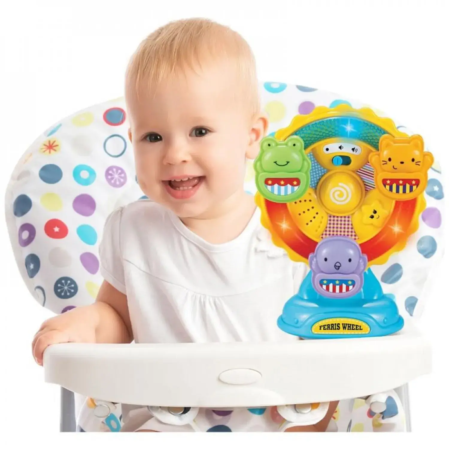 - Sevimli minikler Dönmedolabı çevirdikçe yanıp sönen ışıklar, kurbağa, kuş ve kedi figürlerinden çıkan sesler yemek boyunca arkadaşlık edecek.