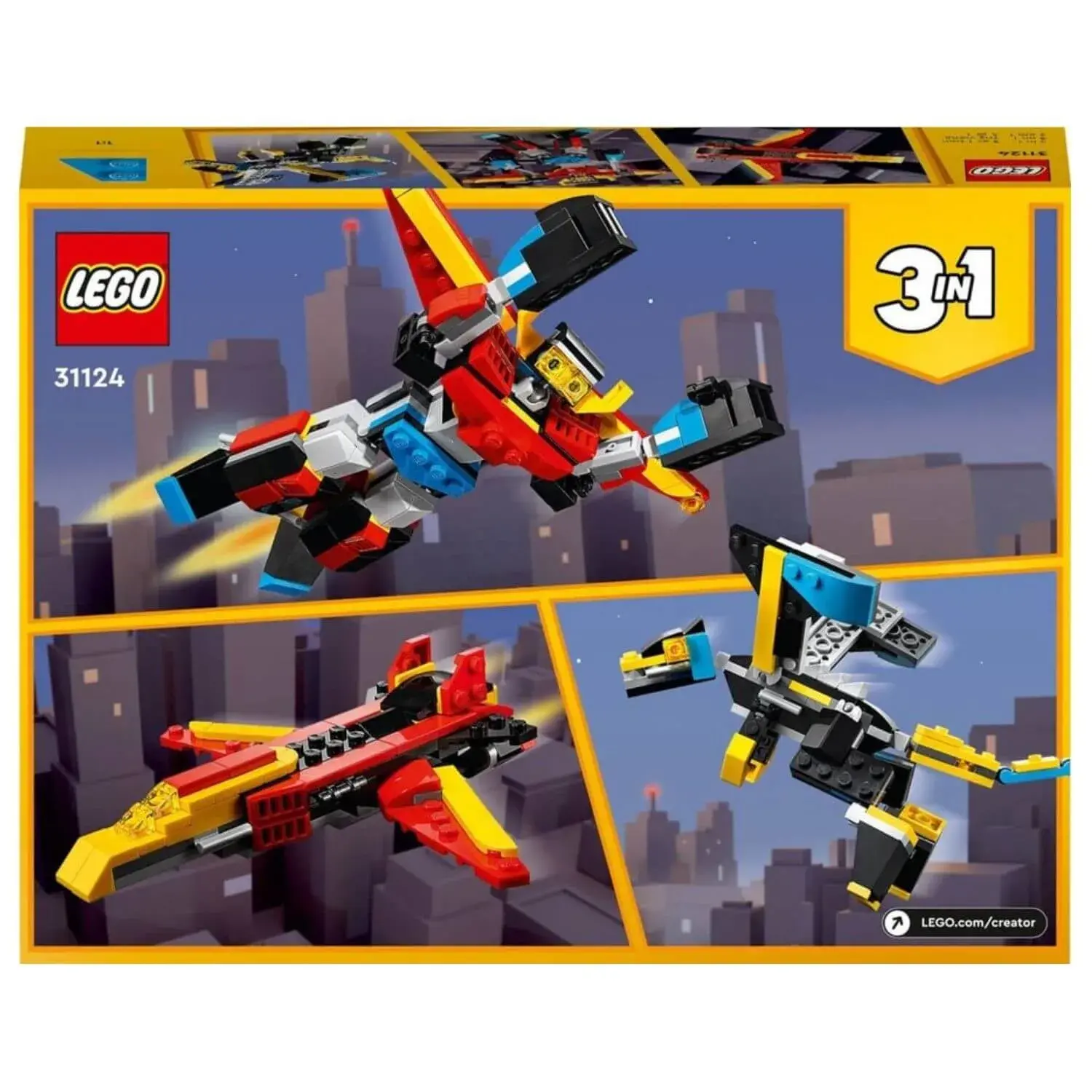 • 3’ü 1 arada oyuncak – Süper Robot (31124) yapım seti, 1 sette bir robot, bir ejderha ve bir jet uçağı olmak üzere 3 modelle çocukların yaratıcı oyunların keyfini çıkarmalarını sağlar;