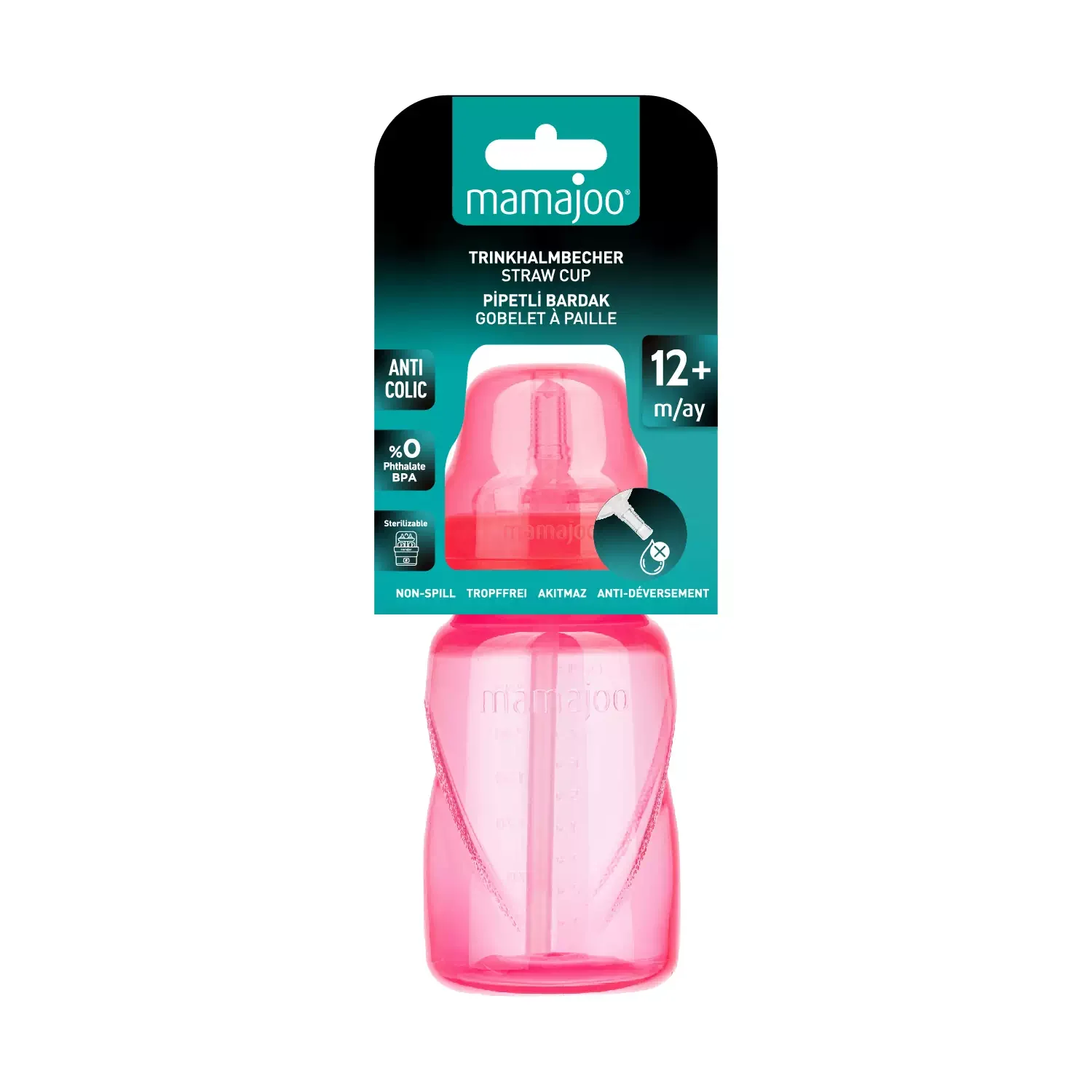 Mamajoo Akıtmaz Pipetli Bardak 270 ml Pembe