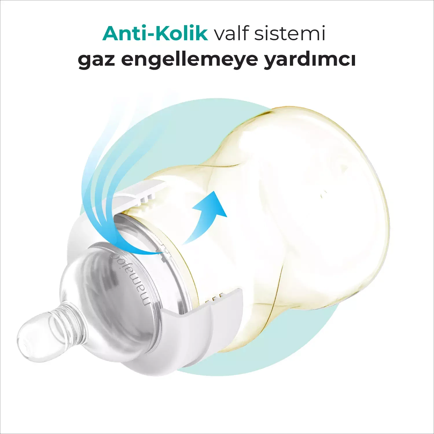 - Biberon emziğinin anti kolik valfi sayesinde hava yutma riski minimuma iner.
