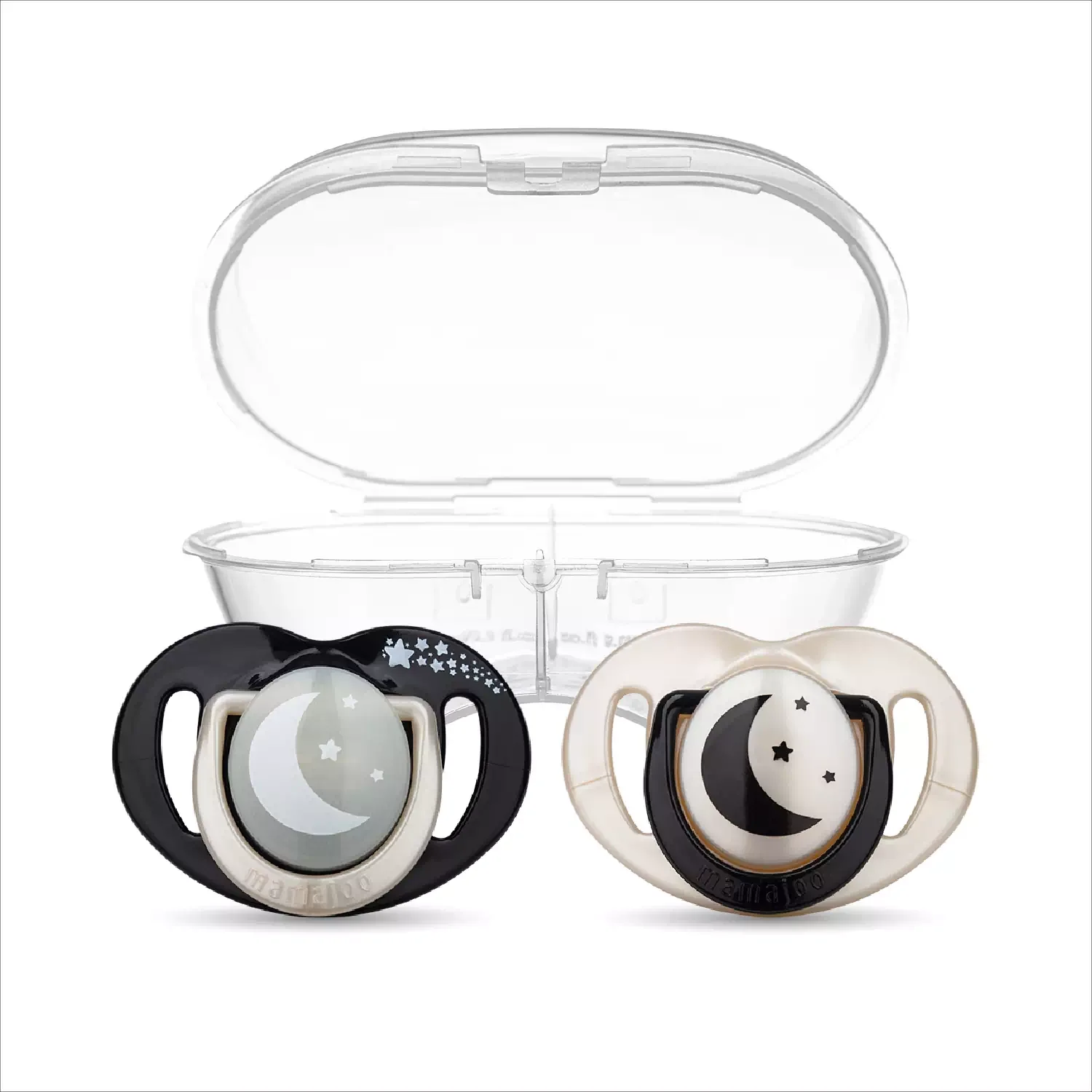 - Mamajoo Sterilizasyon&Saklama Kutulu İkili Desenli Ortodontik Black&Pearl/Gece&Gündüz Emzikleri, hem gece hem de gündüz kullanım için uygundur ve karanlıkta bir süre parlayan emzik gövdesi sayesinde gece kolaylıkla emziğin bulunmasını sağlar.