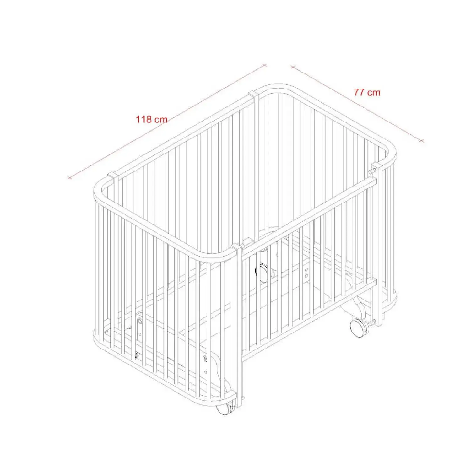 - Bebeğinizin güvenliği için beşiğin tüm kenarları ve köşeleri yuvarlatılmıştır.