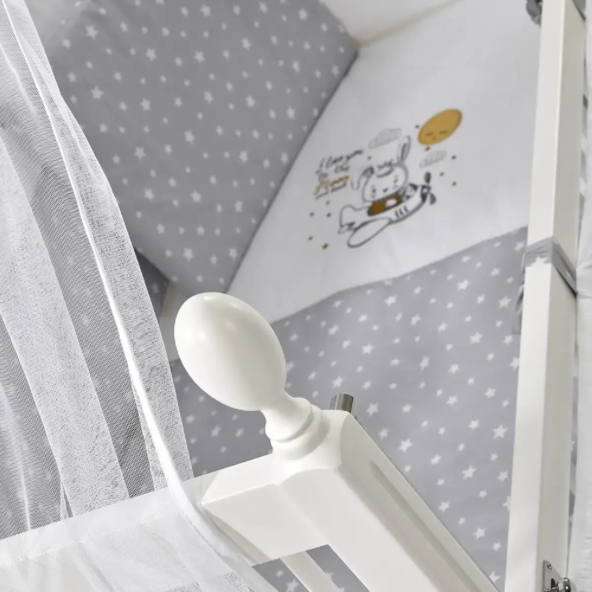 OEKO-TEX Sertifikalı 9 Parçalı Uyku Seti: Yumuşacık pamuklu kumaştan üretilmiştir. 1 adet yorgan, 1 adet çarşaf, 1 adet yastık kılıfı, 1 adet nakışlı yastık kılıfı, 1 adet fermuarlı kısa kenar koruma, 2 adet fermuarlı uzun kenar koruma, 1 adet cibinlik tülü, 1 adet cibinlik aparatı