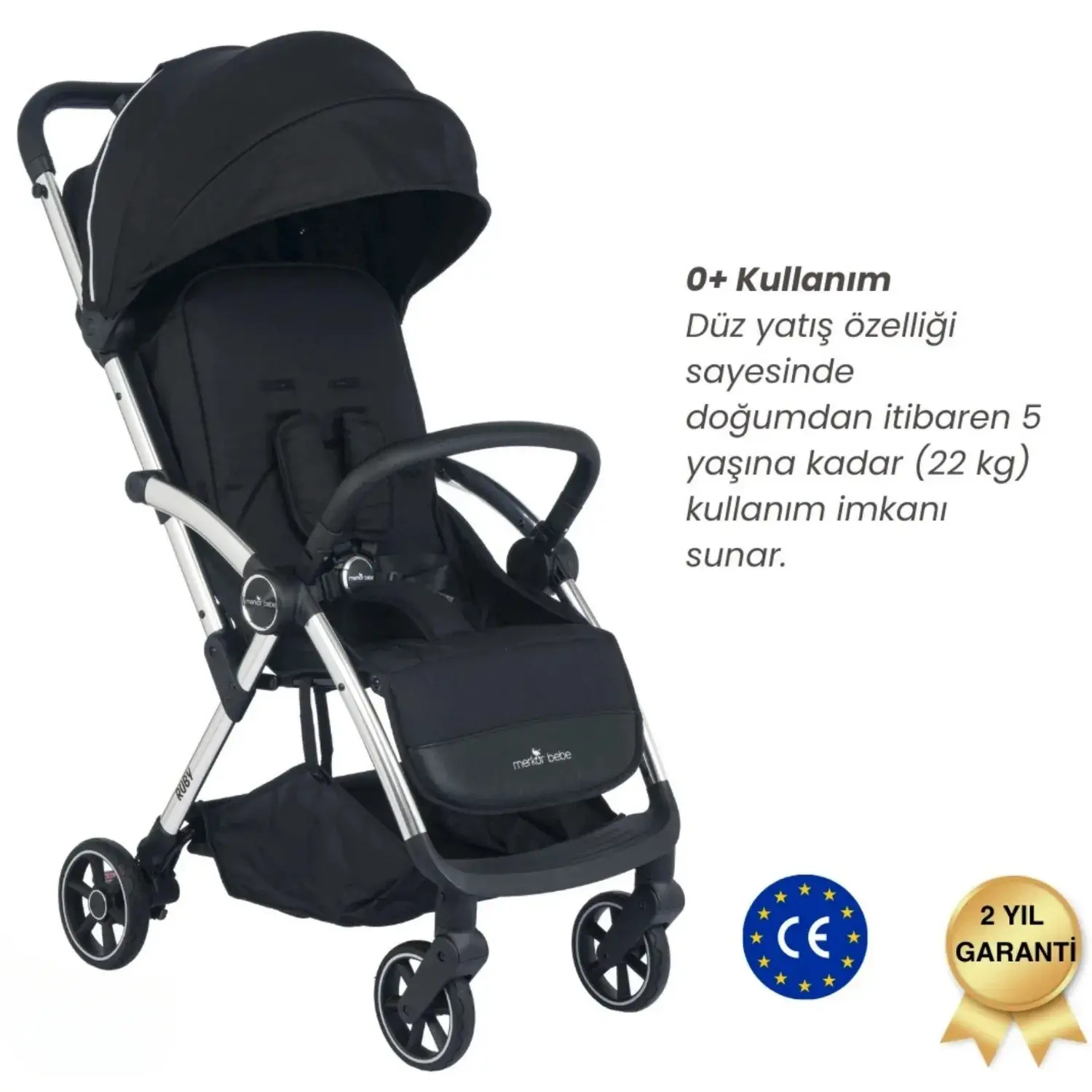 - Düz yatış özelliği: Yenidoğandan itibaren 22 kg’a kadar kullanım