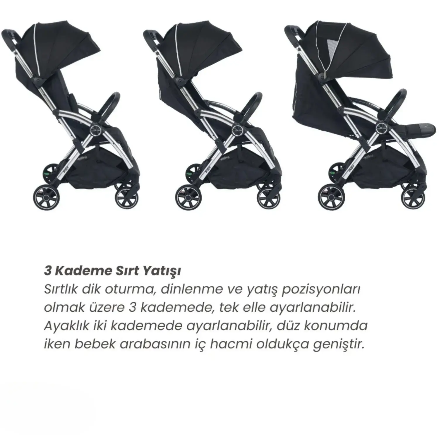 - İkiz bebek arabası opsiyonu: Ayrı satılan ikiz adaptörleri ile iki Ruby birleştirilebilir