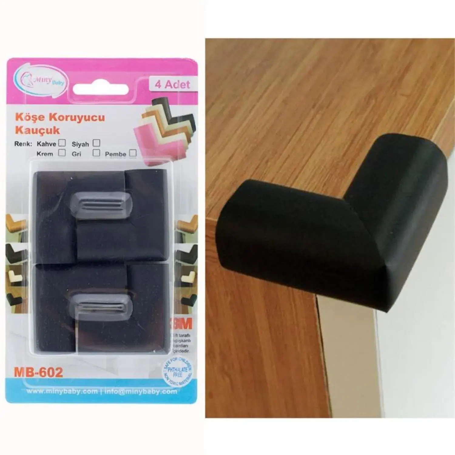 - Miny Baby Kauçuk Köşe Koruyucu ile dayanıklı, esnek ve yumuşak kauçuk malzemeden üretildiğinden çocuğun keskin masa, sehpa, tezgah, doğramalar gibi birçok benzer yerlerin köşelerine çarpması sonucunda oluşabilecek kazaları önleyebilirsiniz.