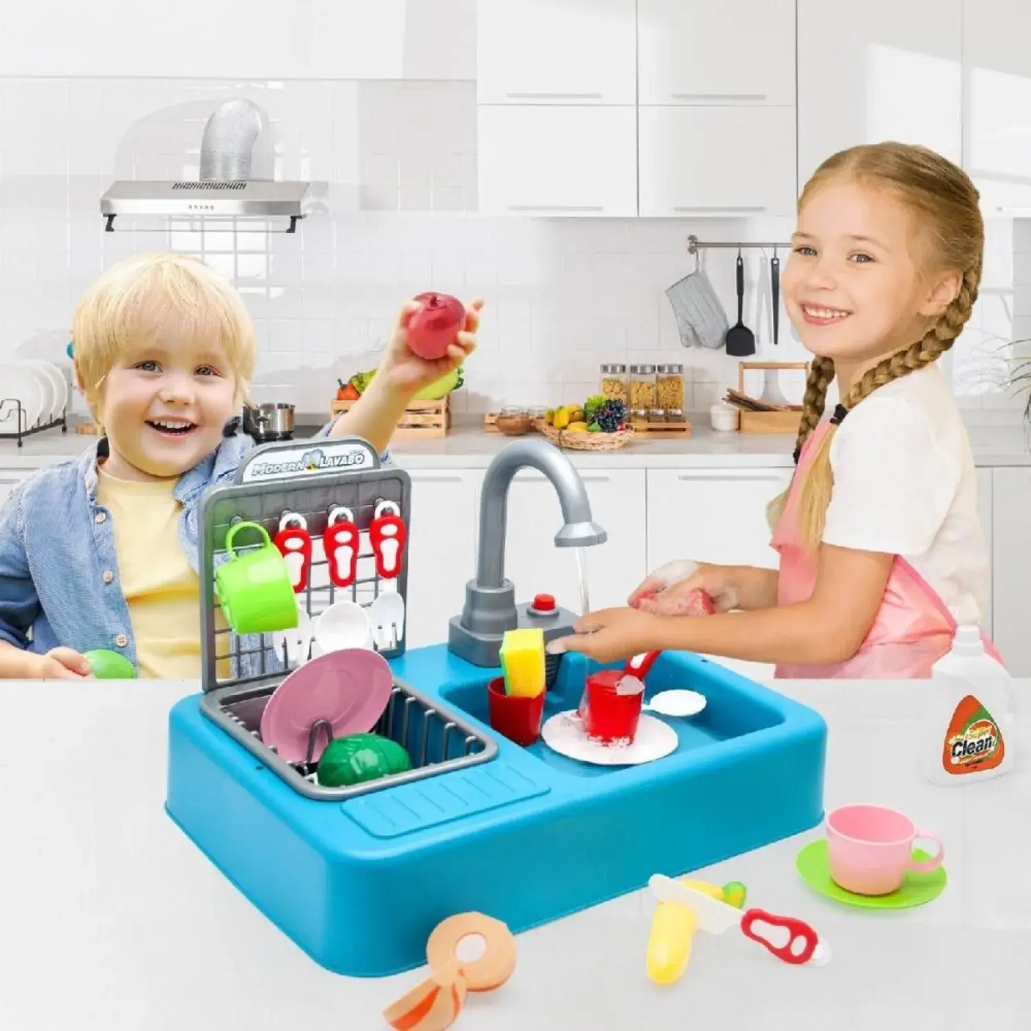 - Kayyum oyuncak modern mutfak çeşmeli lavabo set mutfak oyuncak seti Modern mutfak lavabo seti Lavabo üstünde işaretli alana kadar su ile doldurunuz.