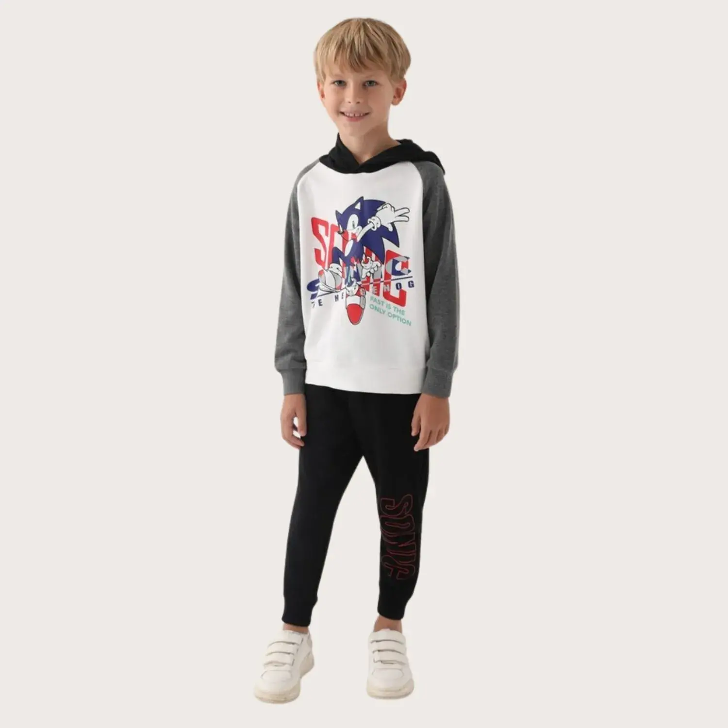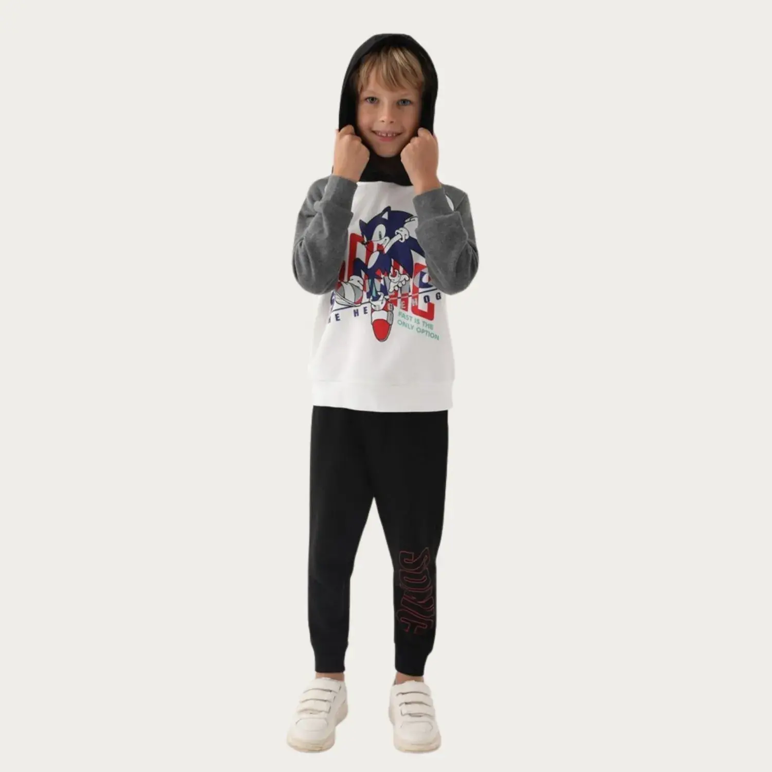 Modern Sonic Beyaz Baskılı Erkek Çocuk Eşofman Takımı, En Malzemelerden Üretilmiştir.