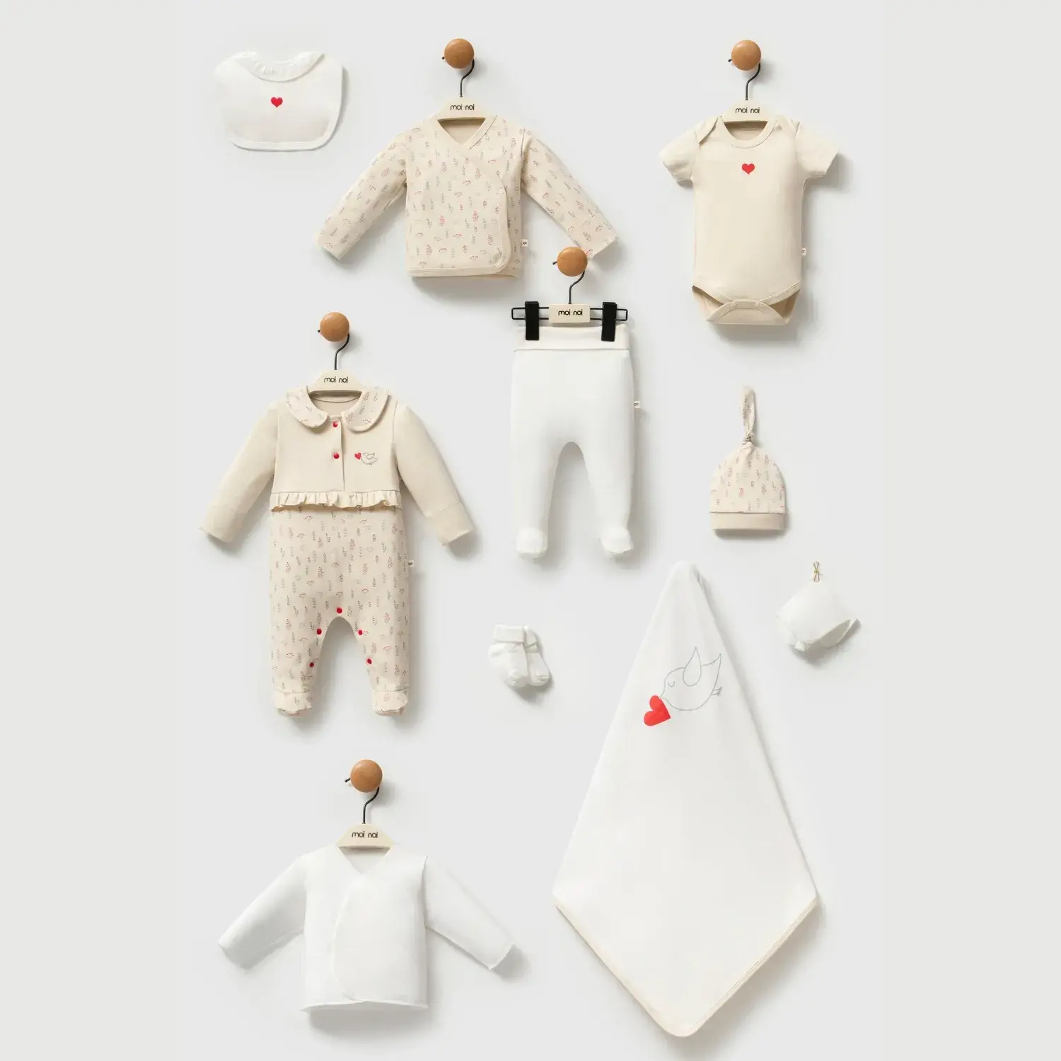 - Moi Noi 10Lu Bebek Hastane Çıkışı pamuklu kumaştan üretildiği için sık yıkamaya uygundur.