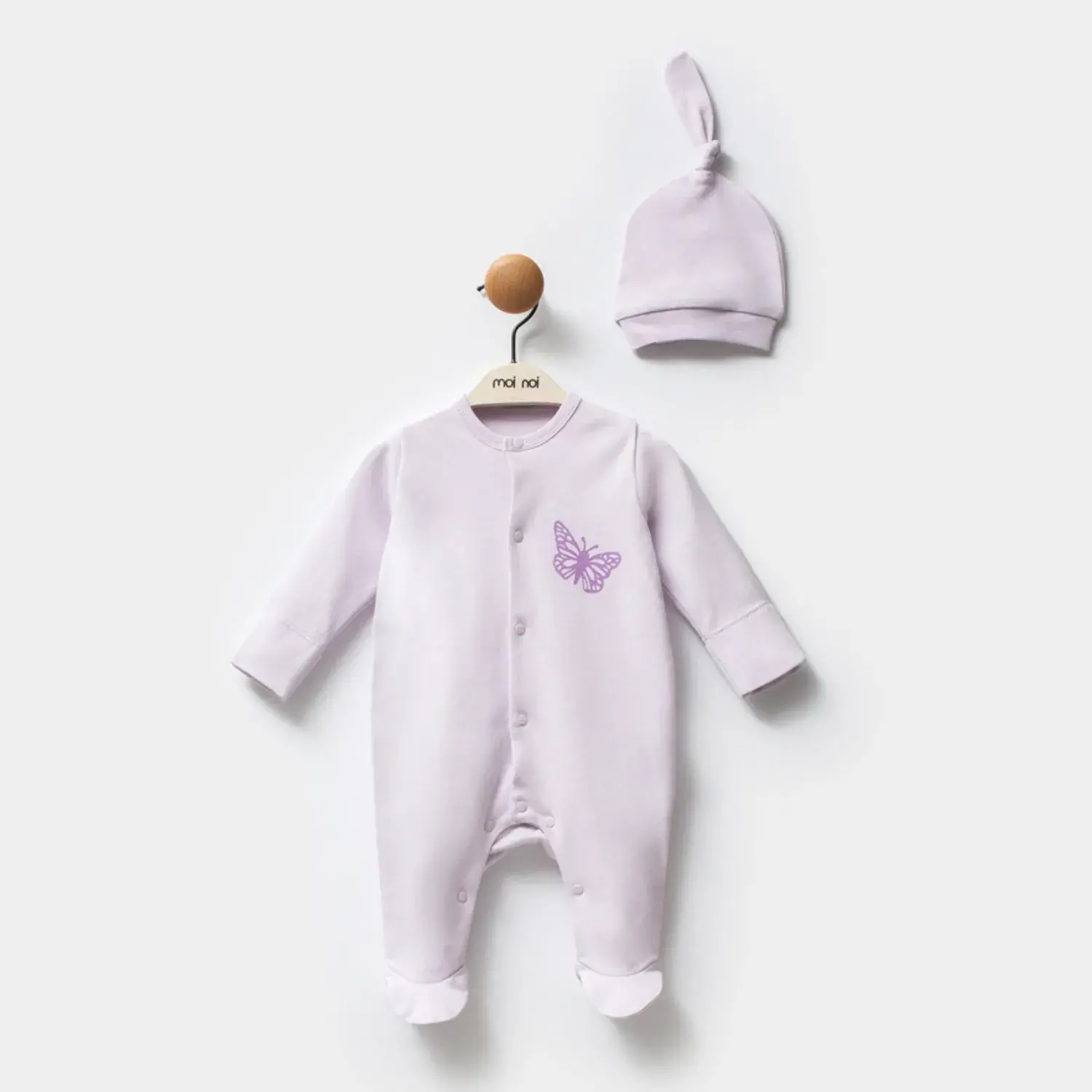 Moi Noi Organik Kız Bebek Tulum Şapkalı Kelebek
