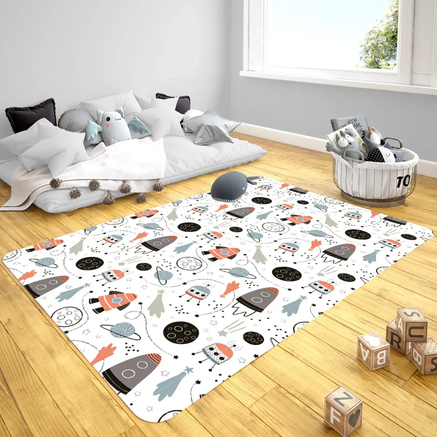 Momys Care Sevimli Hayvanlar Uzayda Çocuk Odası Halı Model 100x160 Cm