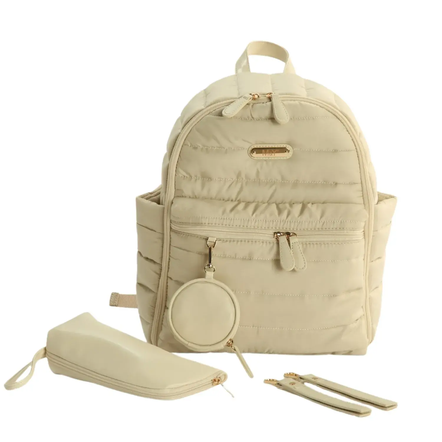 M&Y Collection Puff Deri Bebek Bakım Sırt Çantası Krem / Cream