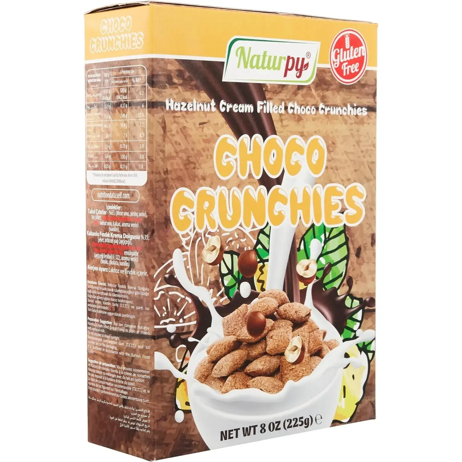 Naturpy glutensiz choco crunches dolgulu gevreği sade olarak tüketebileceğiniz gibi, bir kasede isteğe bağlı soğuk sütle karıştırarak da tüketebilirsiniz.