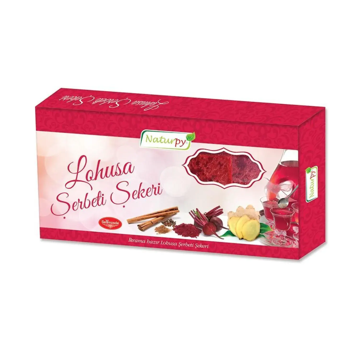 - Naturpy lohusa şerbeti şekeri içerisinde Zencefil, Tarçın, Karanfil Kırmızı Pancar Kökü Tozu bulunur. Bu bitkiler geleneksel olarak doğum yapan anneler ve gözü aydına gelen konuklara sağlığa destek amaçlı yüzyıllardır kullanılmaktadır.