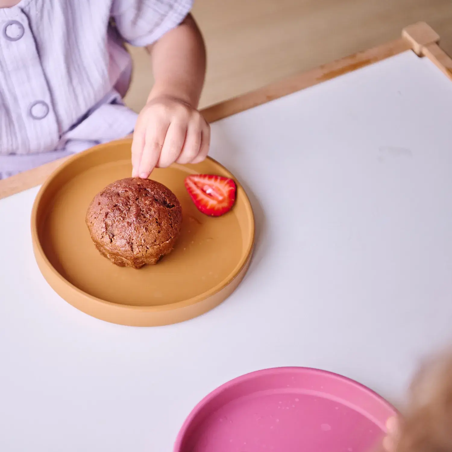 Fırına ve mikrodalgaya girebilir (200°C’ye kadar). Silikonun düşük ısı iletkenliği sayesinde yiyecekler ısıtıldıktan sonra minik eller tabağa güvenle dokunabilir.